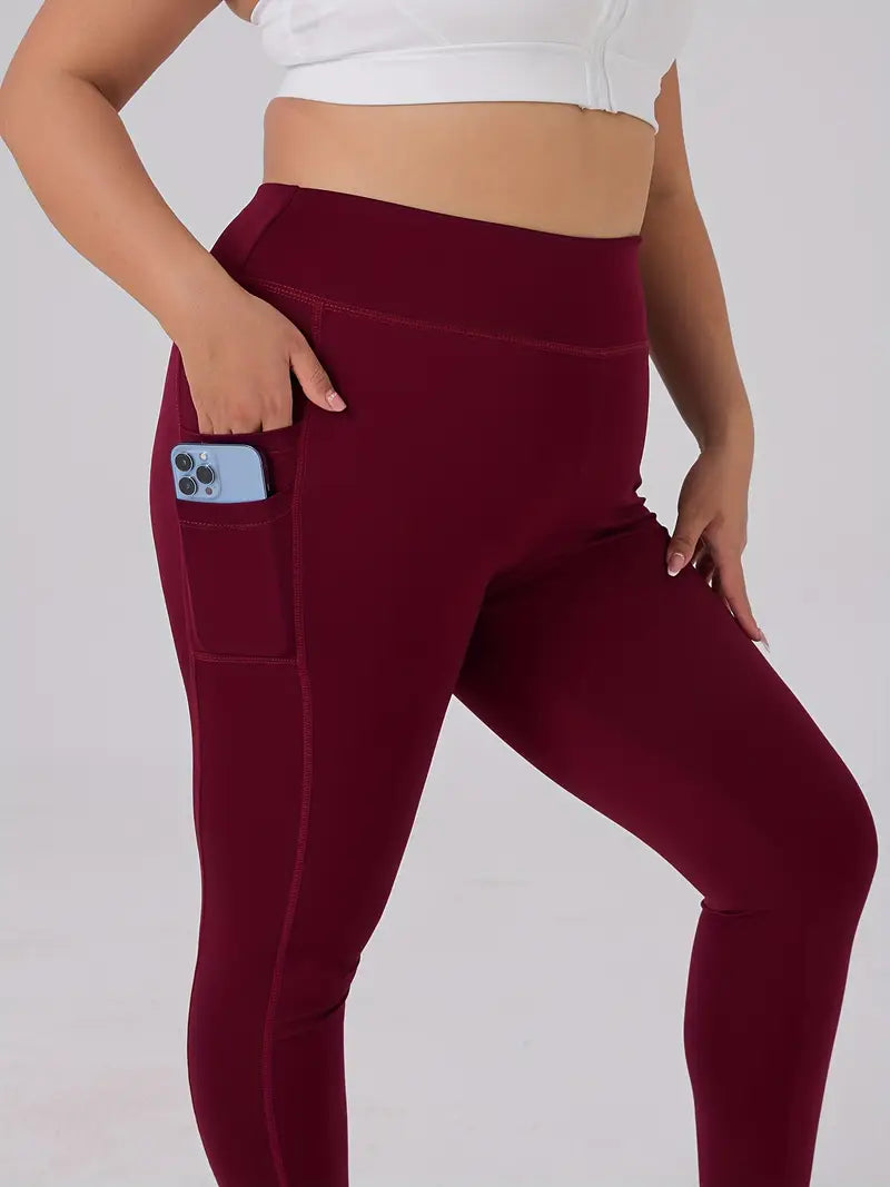 Plus Size Women Solid High-Waisted Leggings Stretchy Pockets Casual