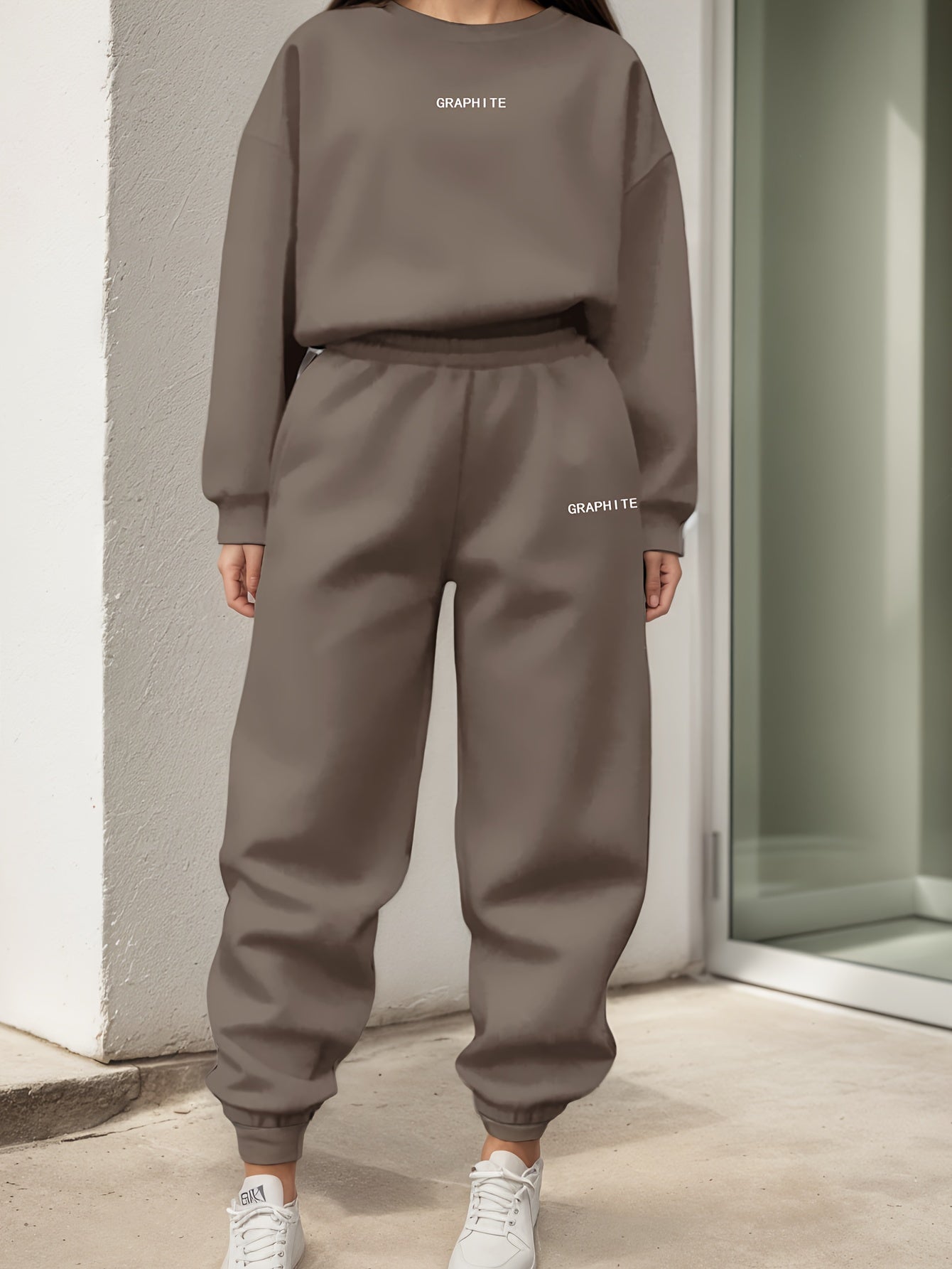 Plus Size Women Sportswear Set Polyester Embroidered Letter Casual Streetwear