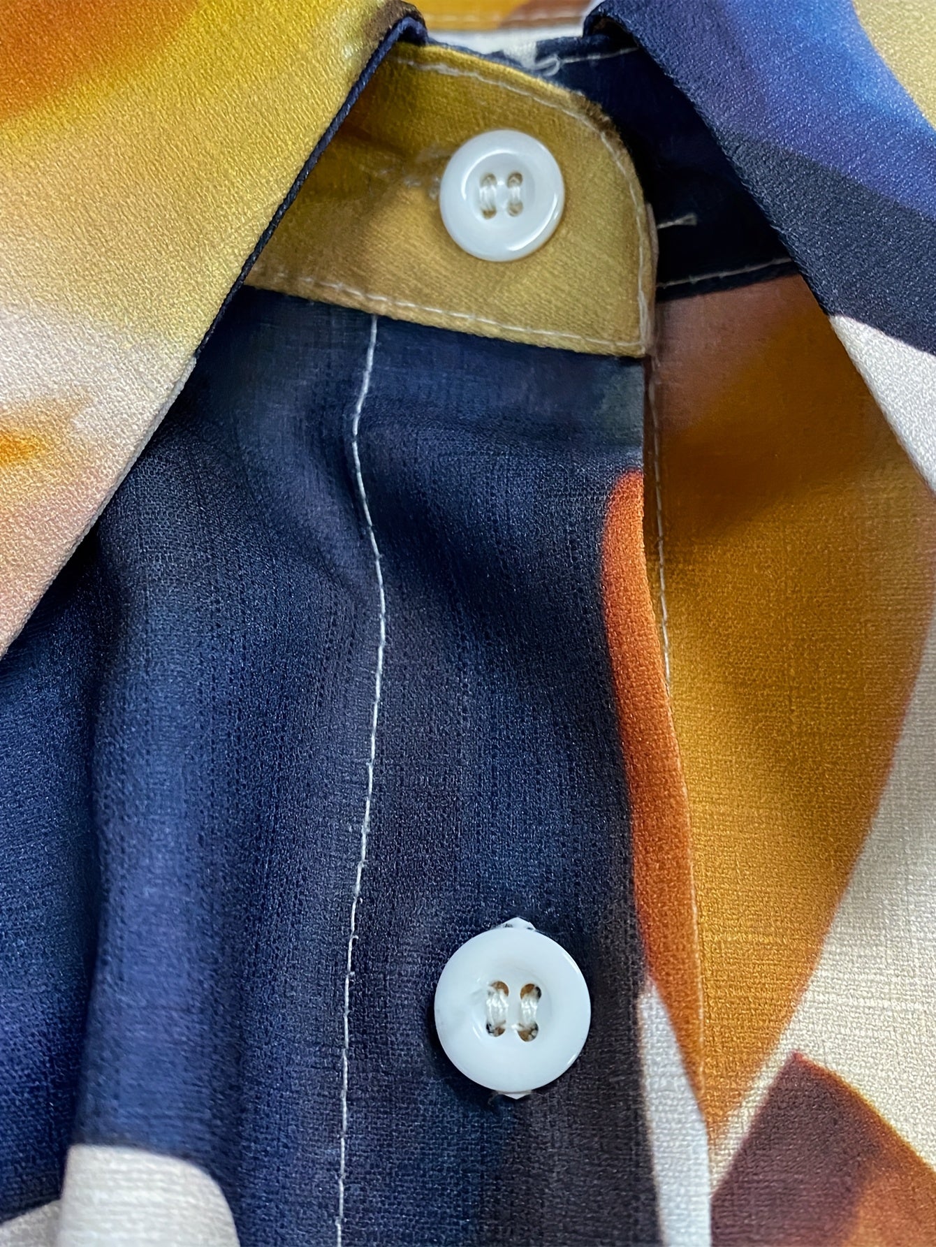 Plus Size Womens V-Neck Blouse Geometric Print Polyester Long Sleeve Casual