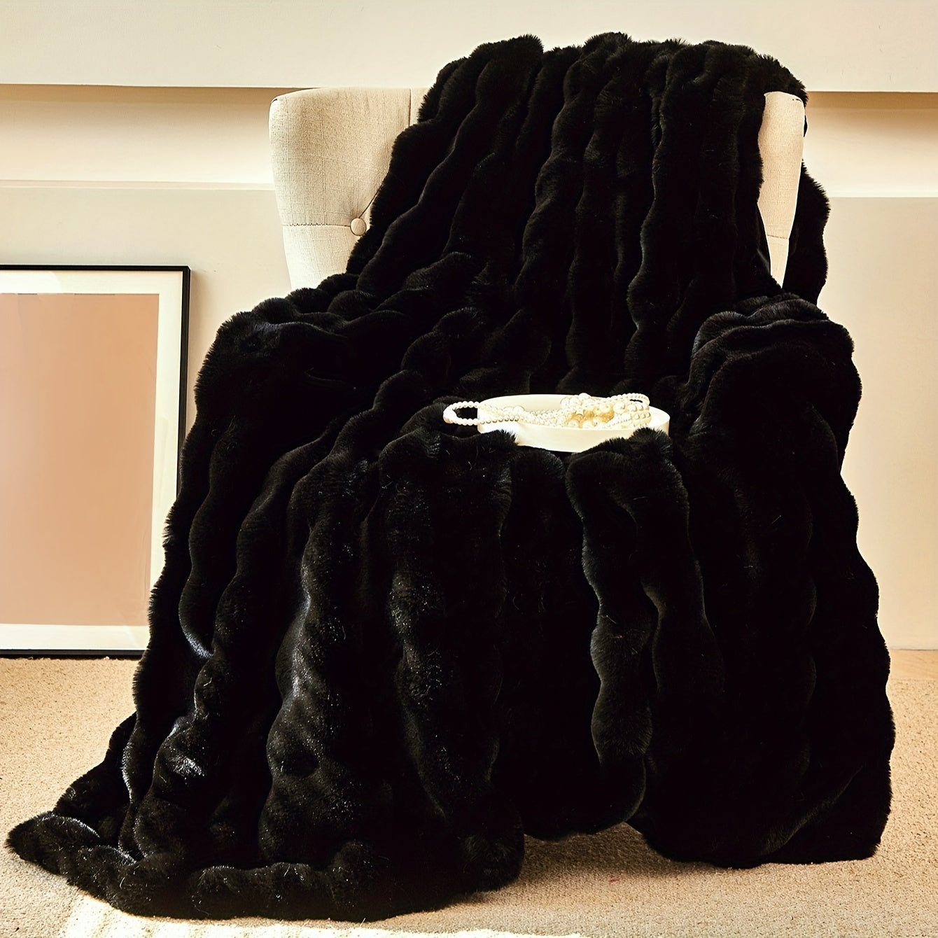 Polyester Faux Rabbit Short Plush Bed Blanket Solid Color Multi-Purpose All Seasons