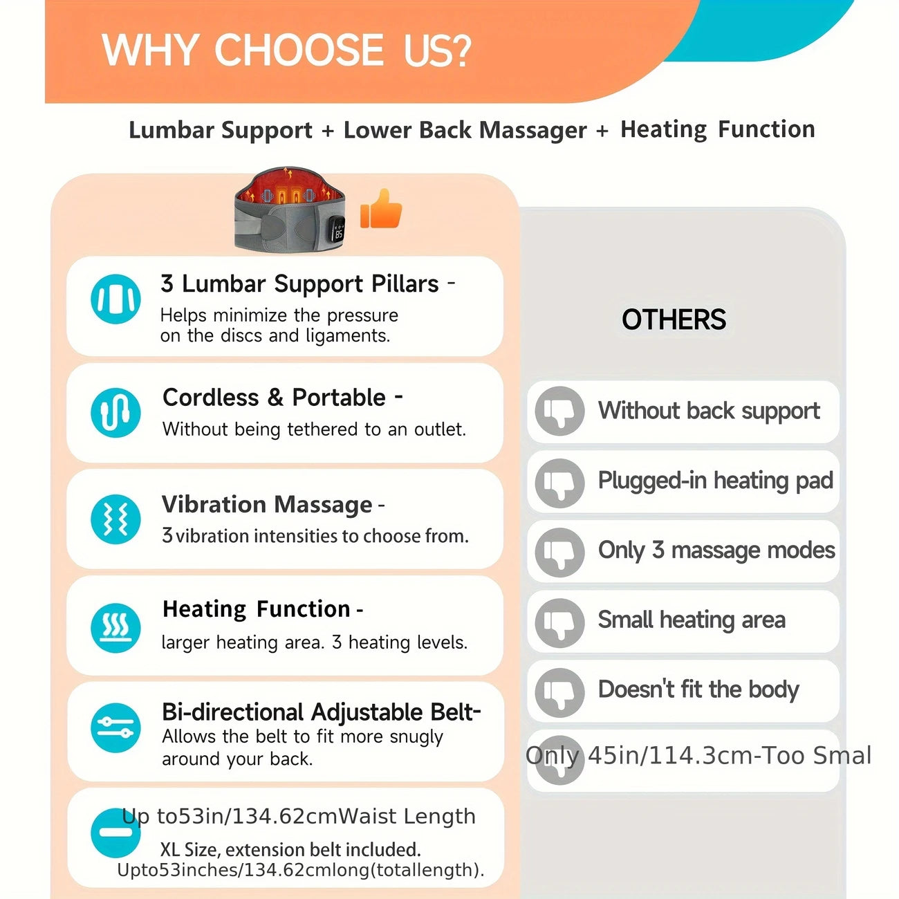 Portable Back Massager with Heat Vibration 3 Heat Settings Auto-Off