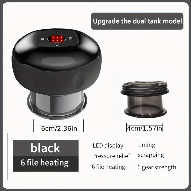 Portable Cupping Massager with LED Display USB Rechargeable 6-Speed Heating for Muscle Relaxation