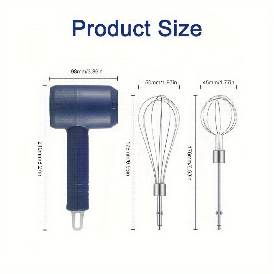 Portable Electric Handheld Whisk Mixer with USB Rechargeable Battery, 3-Speed, Stainless Steel Whisks for Baking and Cooking