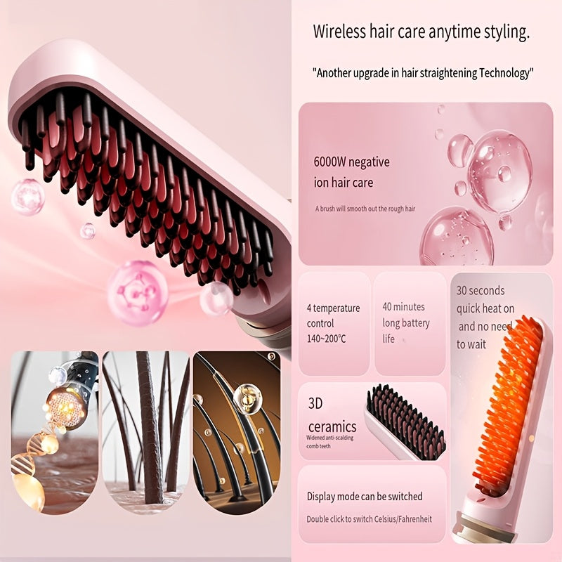 Portable Hair Straightening Comb with LED Display USB Rechargeable for Home Travel Use