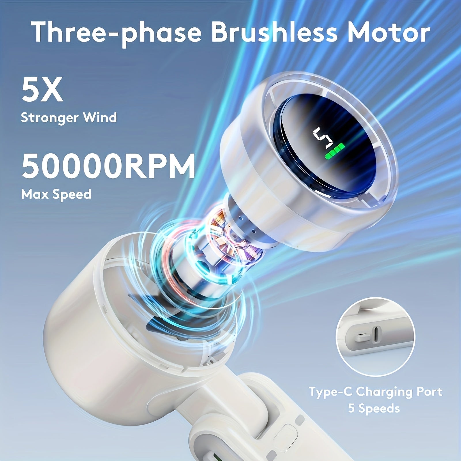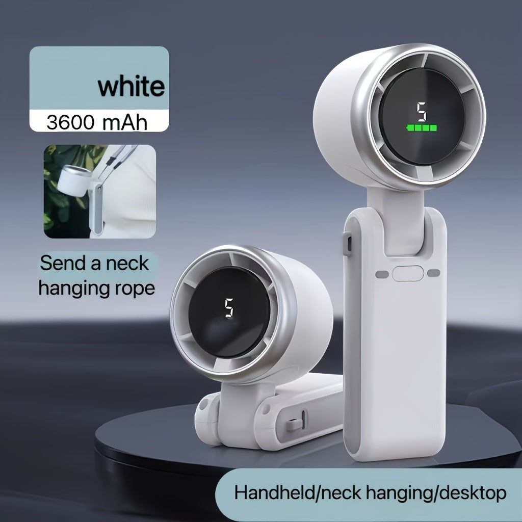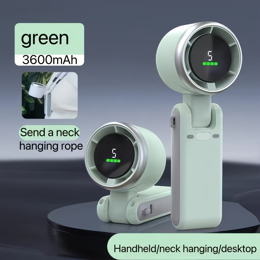 Mini Handheld Fan with 5-Speed Control Digital Display USB Rechargeable for Travel Camping Outdoor Black Gray