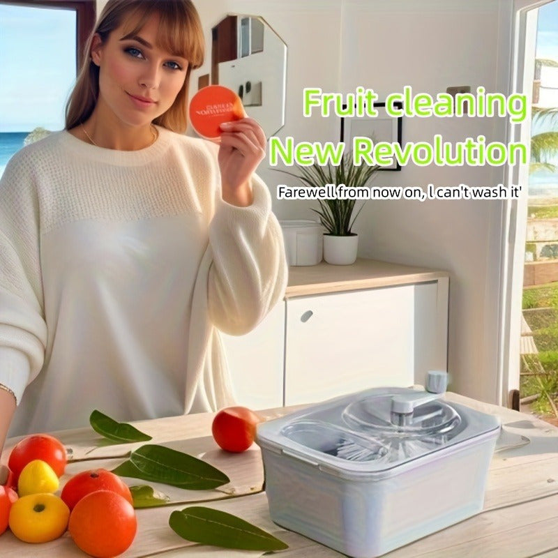 Portable Manual Fruit and Vegetable Washer with Basket, Double-Layer Design