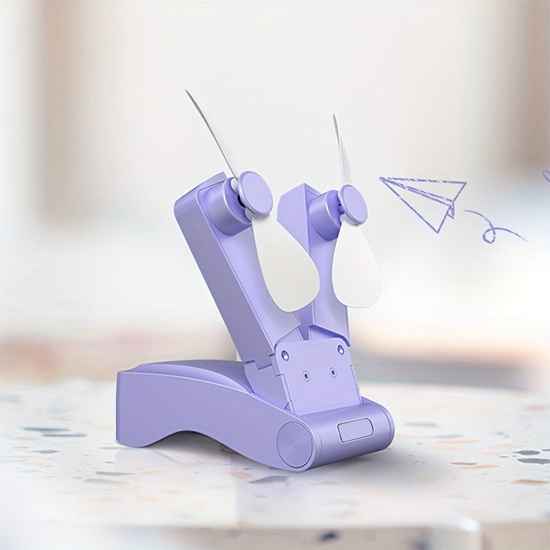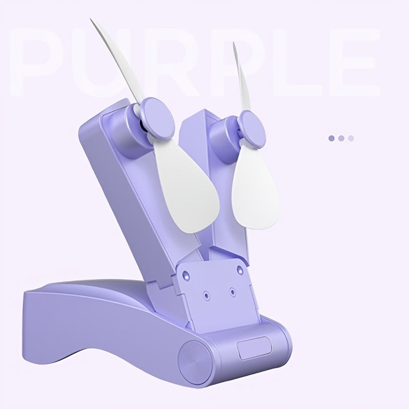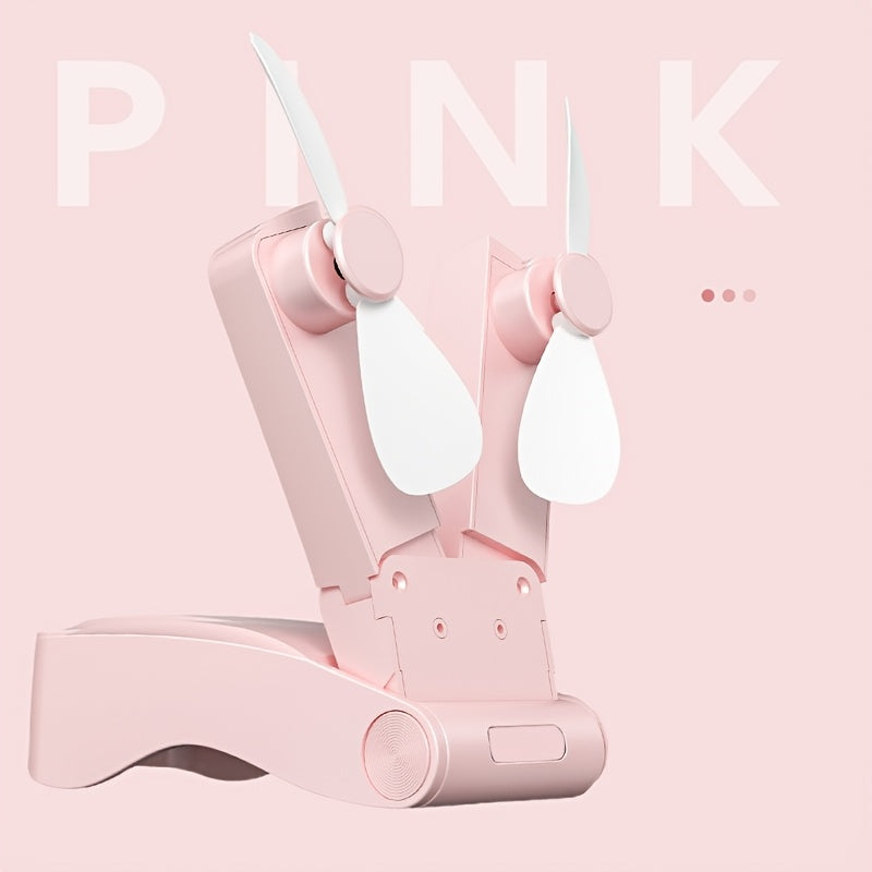 Mini fan with dual heads, strong wind, long-lasting battery, USB rechargeable, lightweight cooling