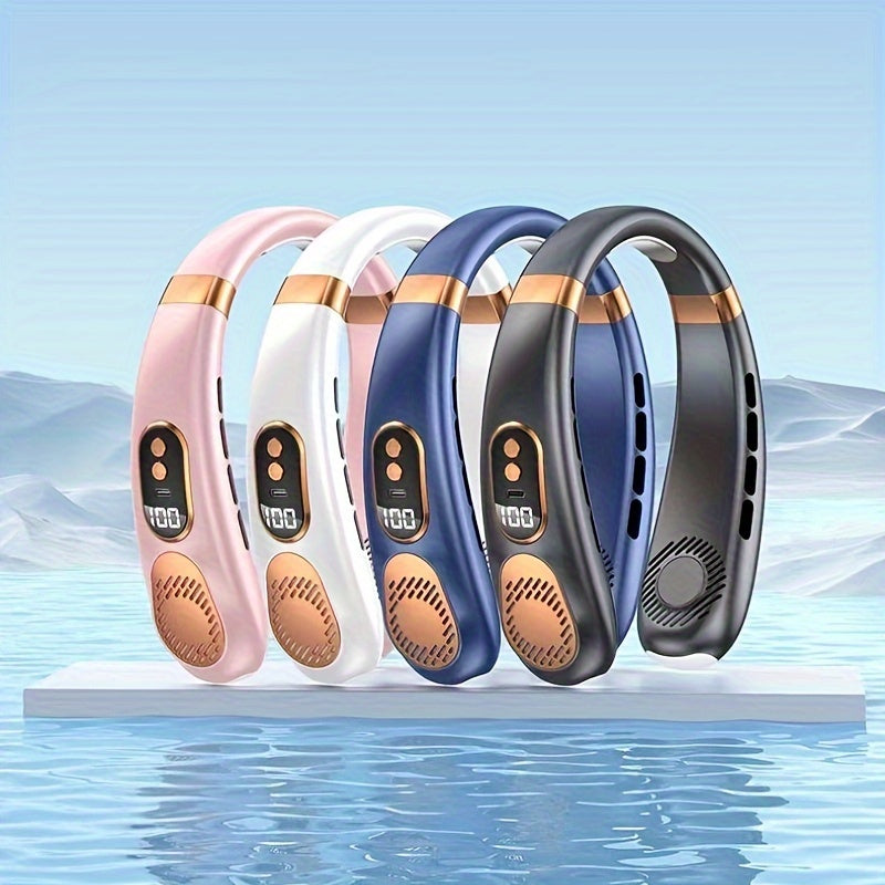 Portable Neck Fan with LED Display, 5-Speed Adjustable Cooling, USB Rechargeable for Home Office Outdoor Cycling