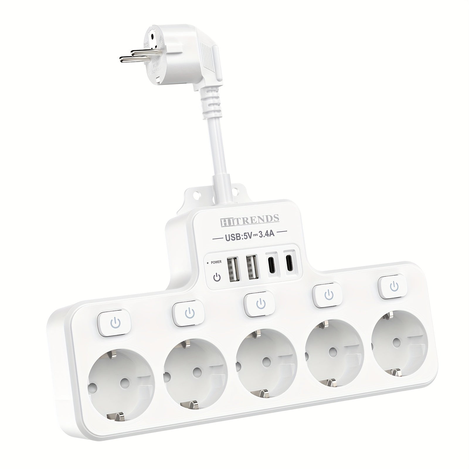 Power Strip with 5 EU Sockets and 4 USB Ports Wall-Mounted Smart Charging