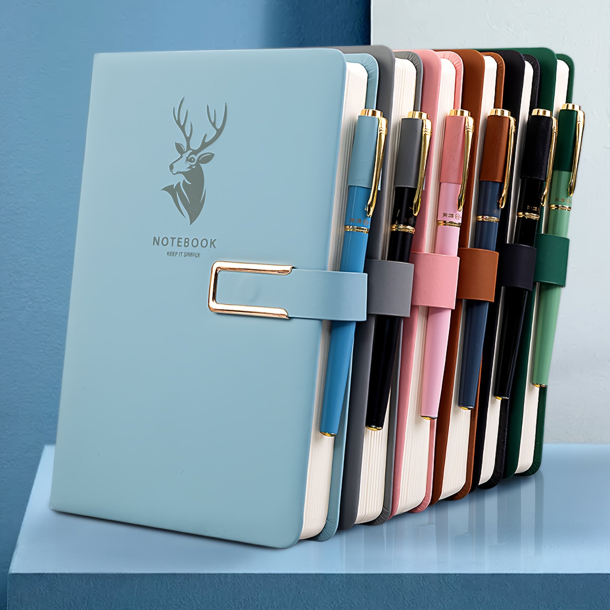 Faux Leather Notebook with Buckle Closure Waterproof Square Grid Pages A5 for Home Office Study