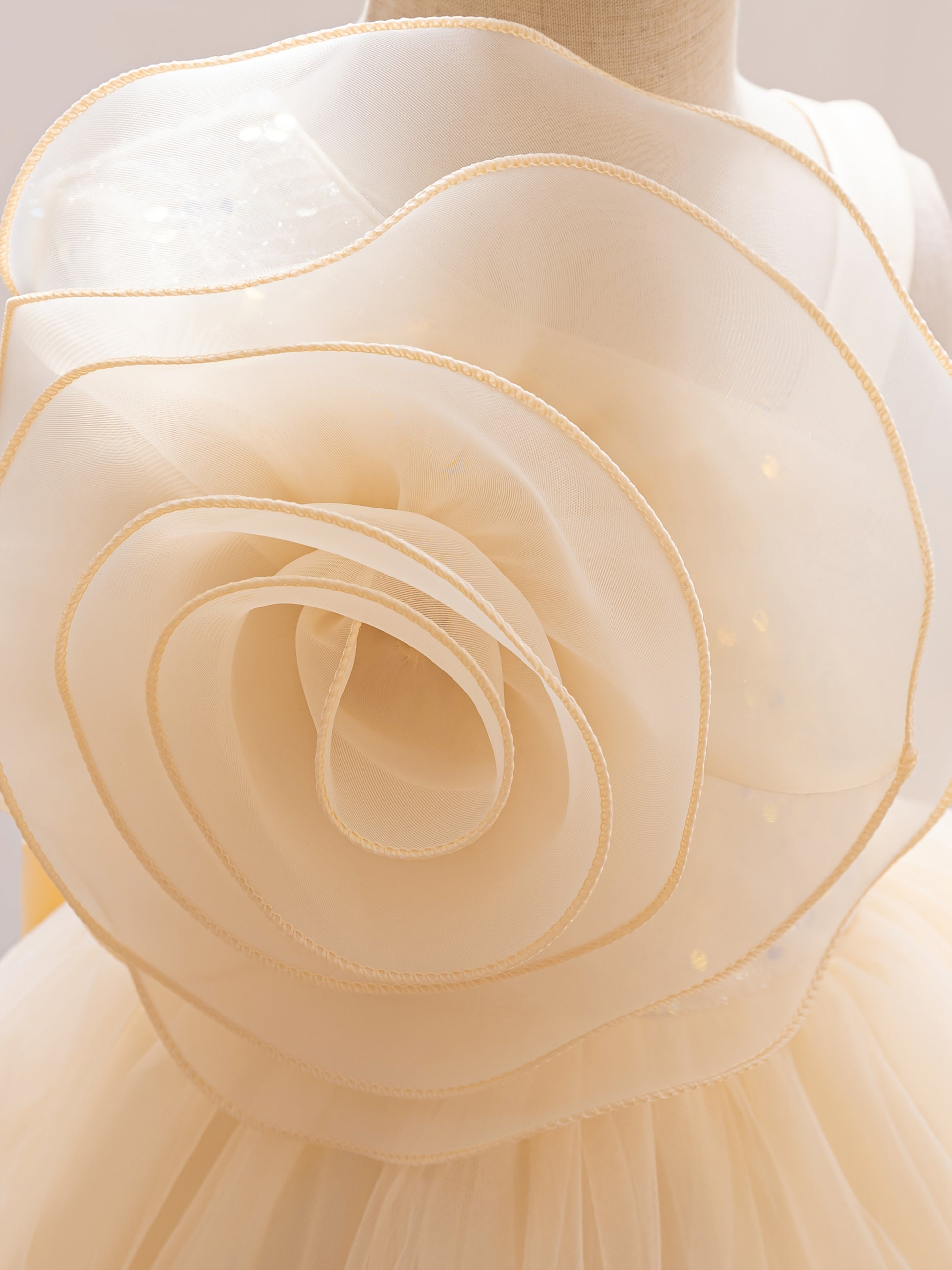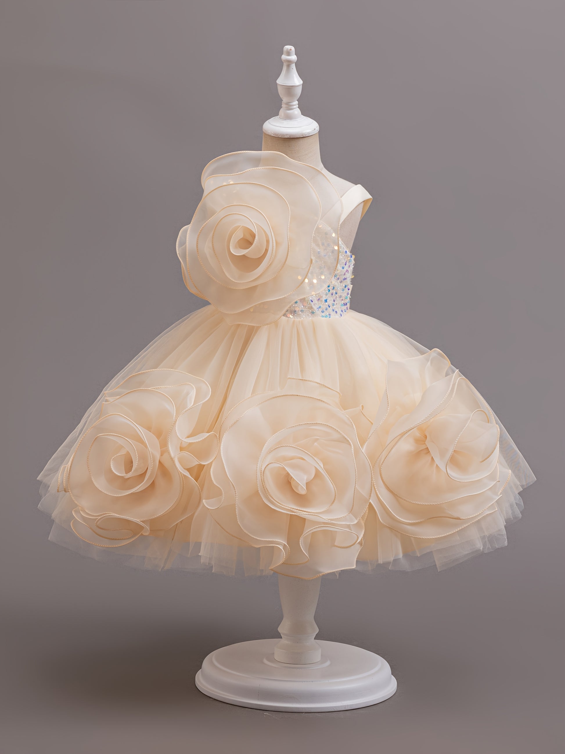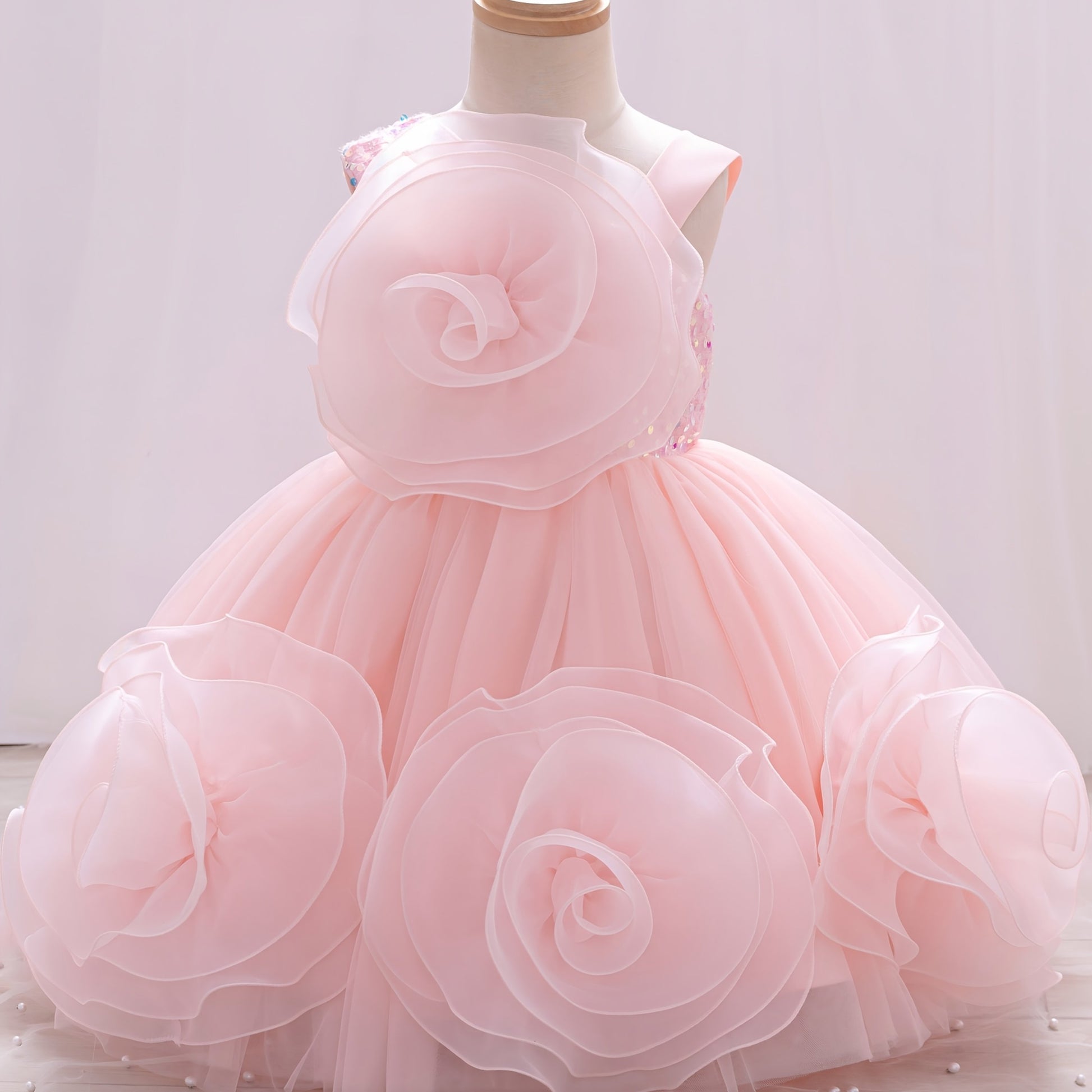 Girls Sleeveless Red Floral Dress for Young Girls Midi Fitted Party Piano Performance