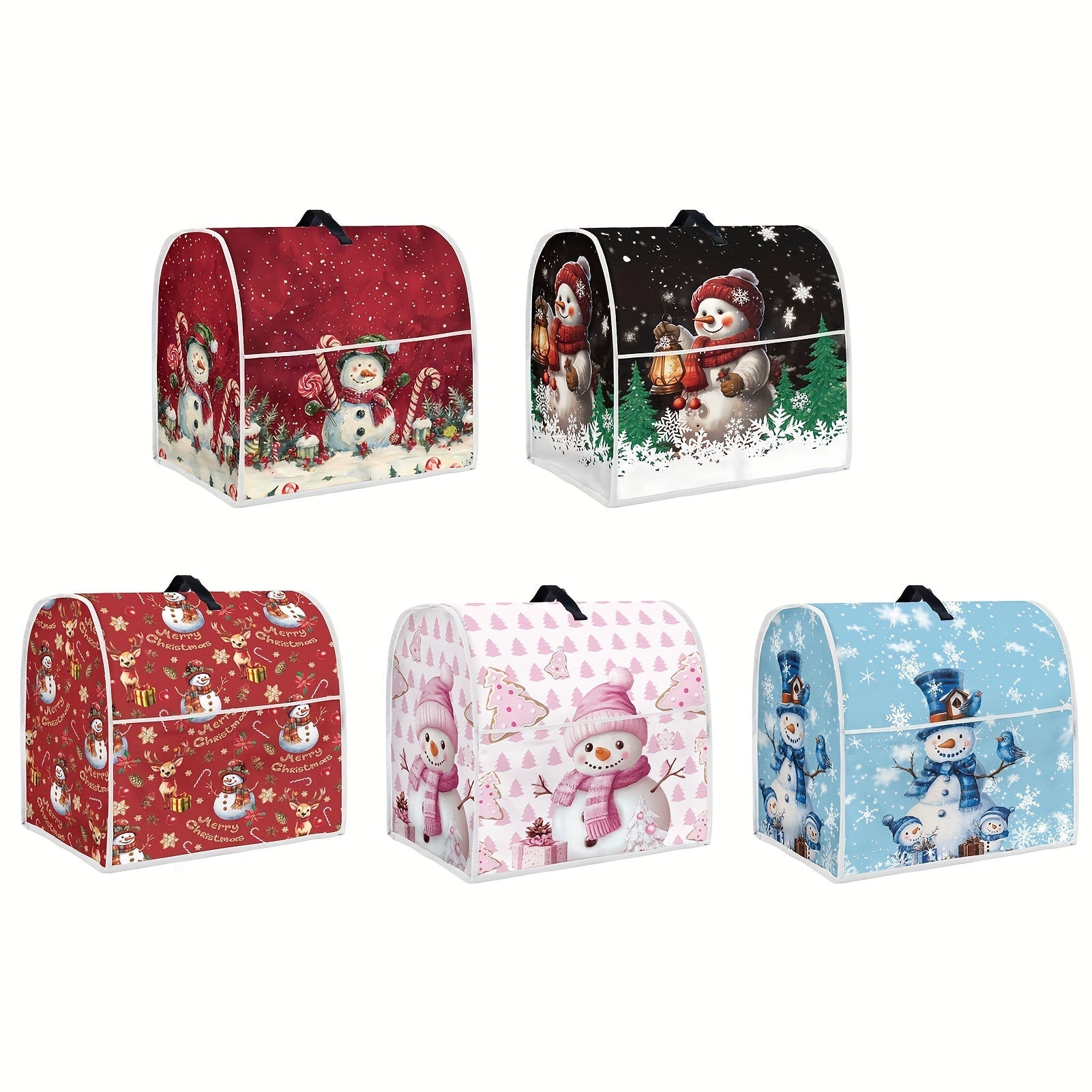 Christmas Snowman Print Stand Mixer Cover Dustproof Kitchen Accessory with Front Pocket