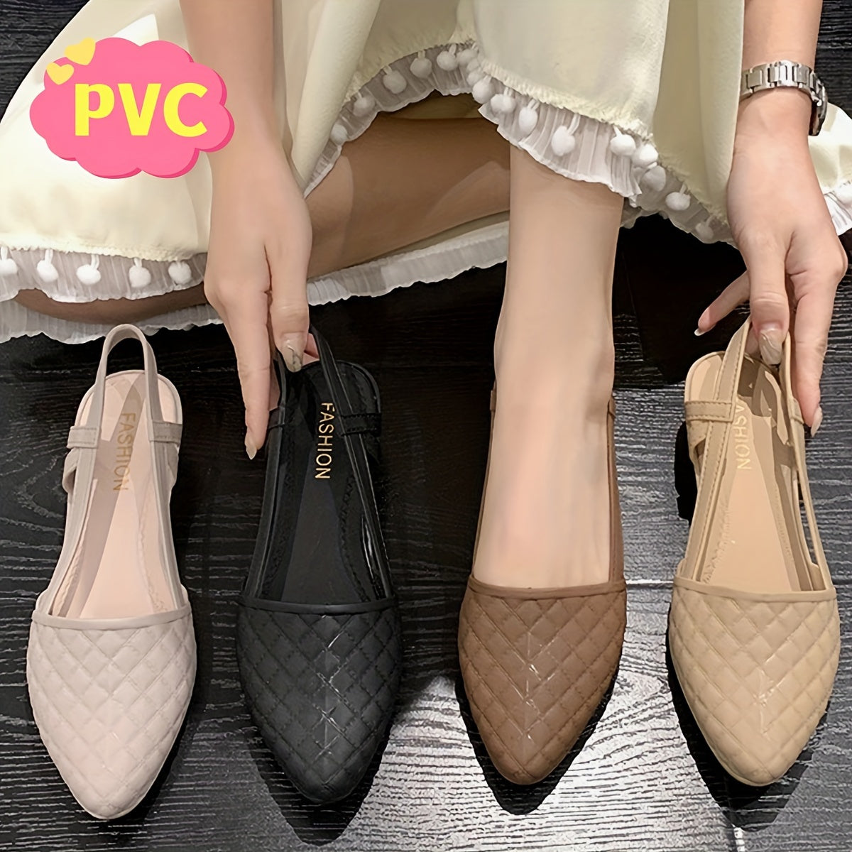 Women's Quilted PVC Sandals with Ankle Strap and Pointed Toe