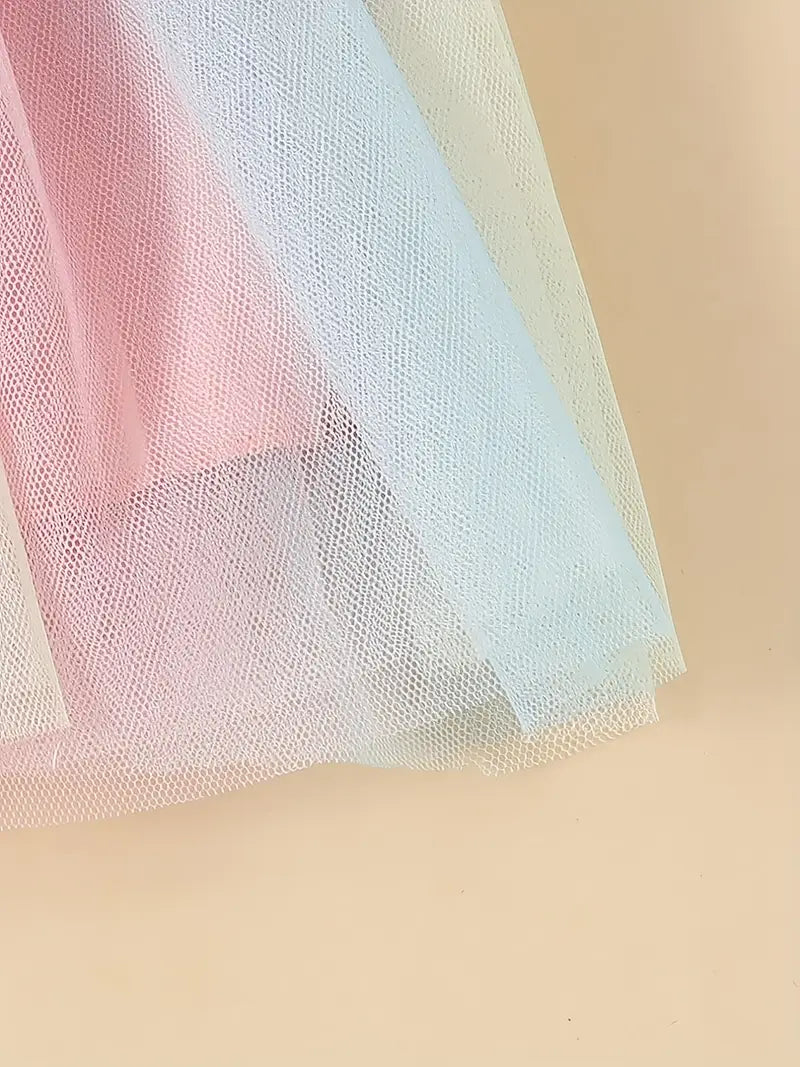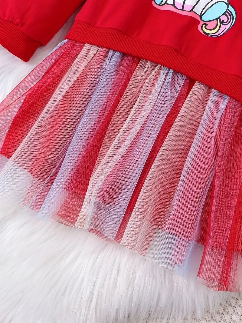 Girls Rainbow Tutu Dress with Unicorn Print Long Sleeve Midi Autumn Spring