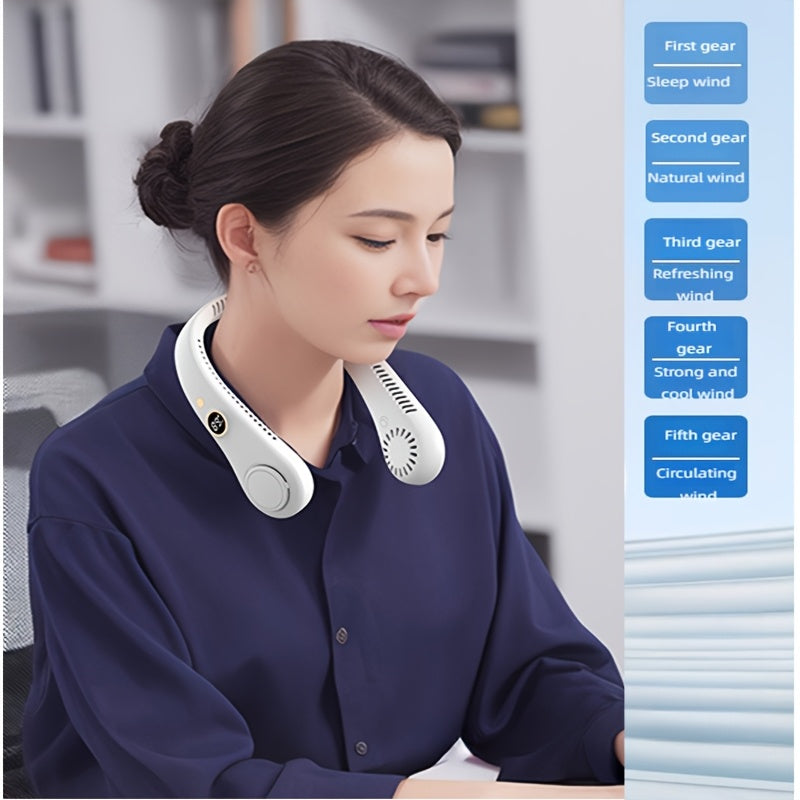 Rechargeable Bladeless Neck Fan with 5-Speed Cooling Hands-Free Outdoor Use