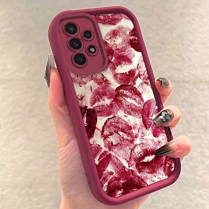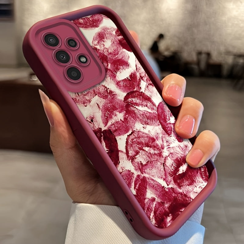 Retro Red Lip Print TPU Phone Case for Samsung Galaxy Models Anti-Dust Fashionable Gift