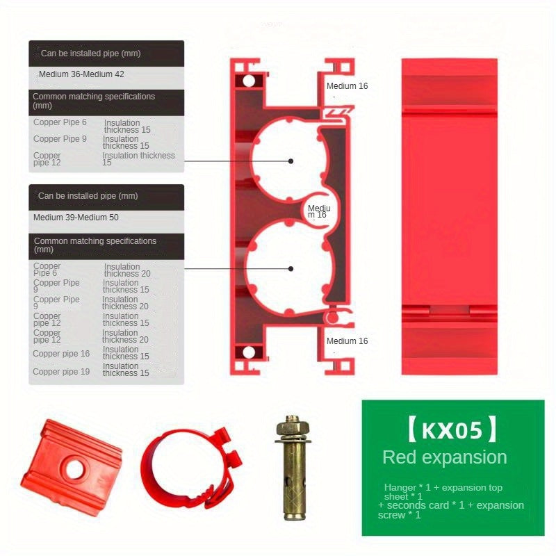 Red Plastic Central Air Conditioning Pipe Hanger with Snap-On Clips