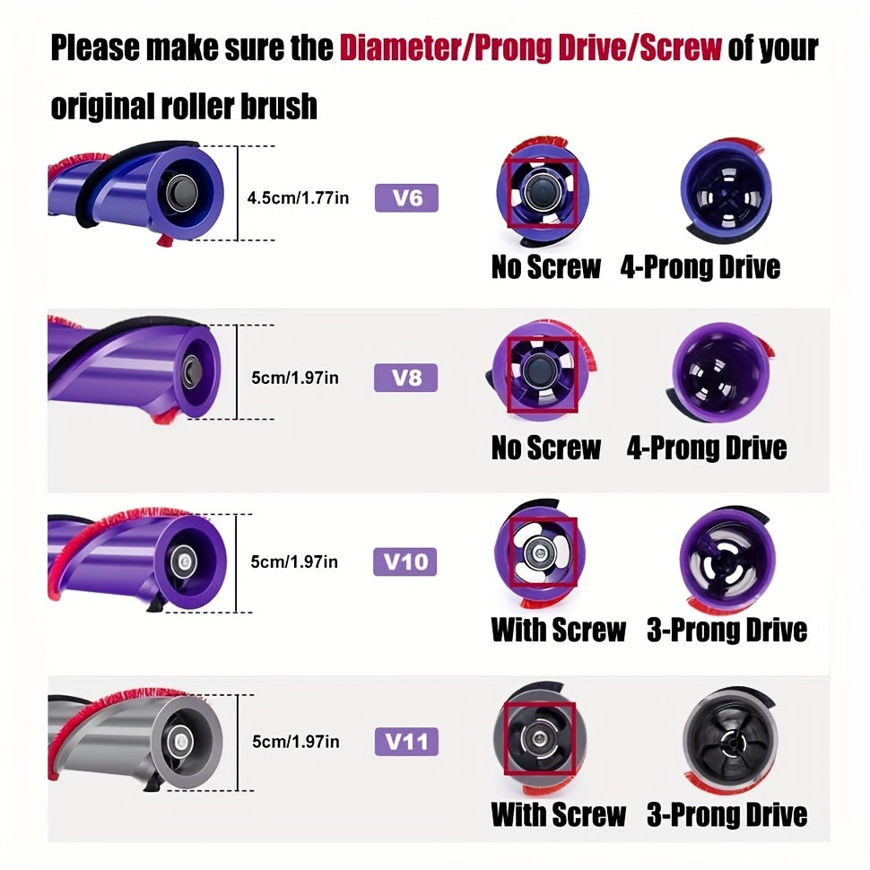 Replacement Brush Bar for V6 Vacuum Cleaner 4 Prong Drive No Screw