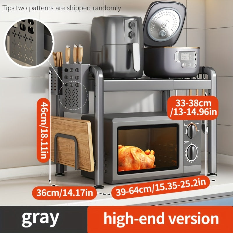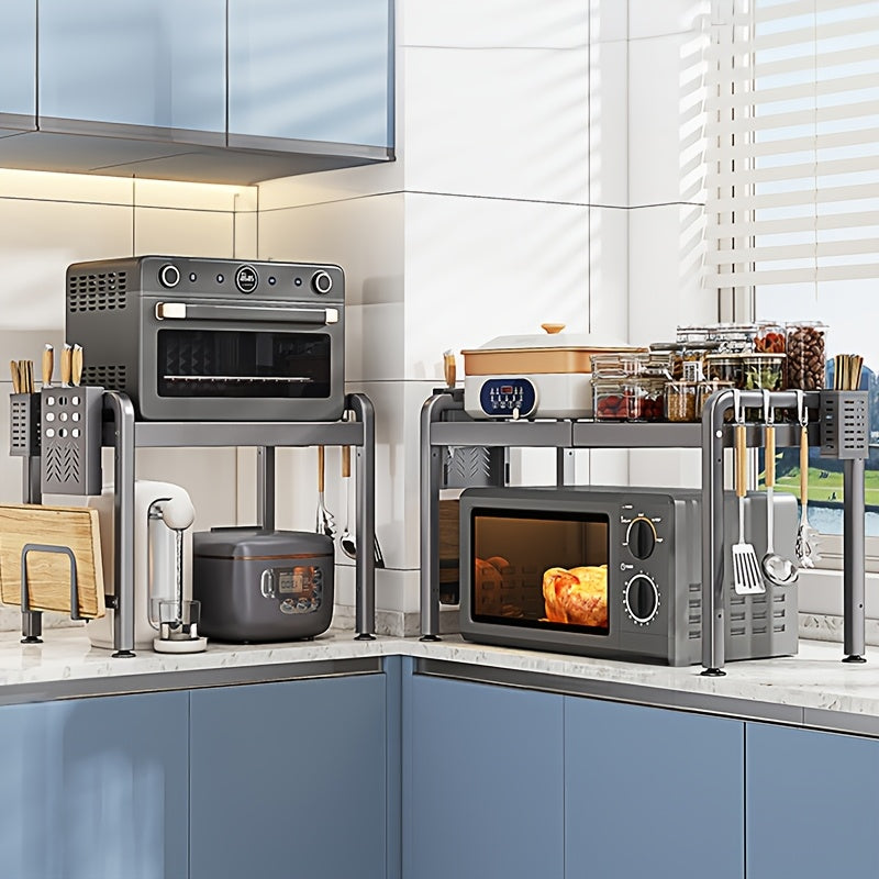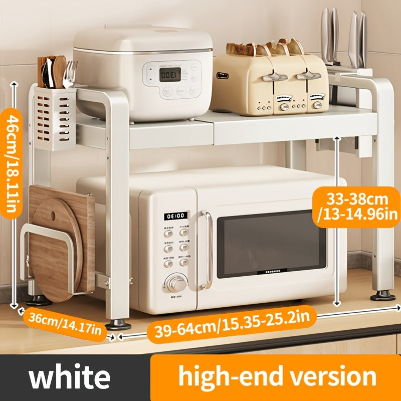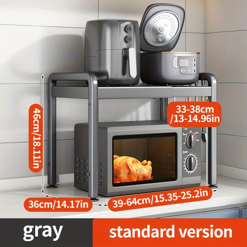 Retractable Microwave Oven Rack Carbon Steel Metal Kitchen Countertop Storage Gray White