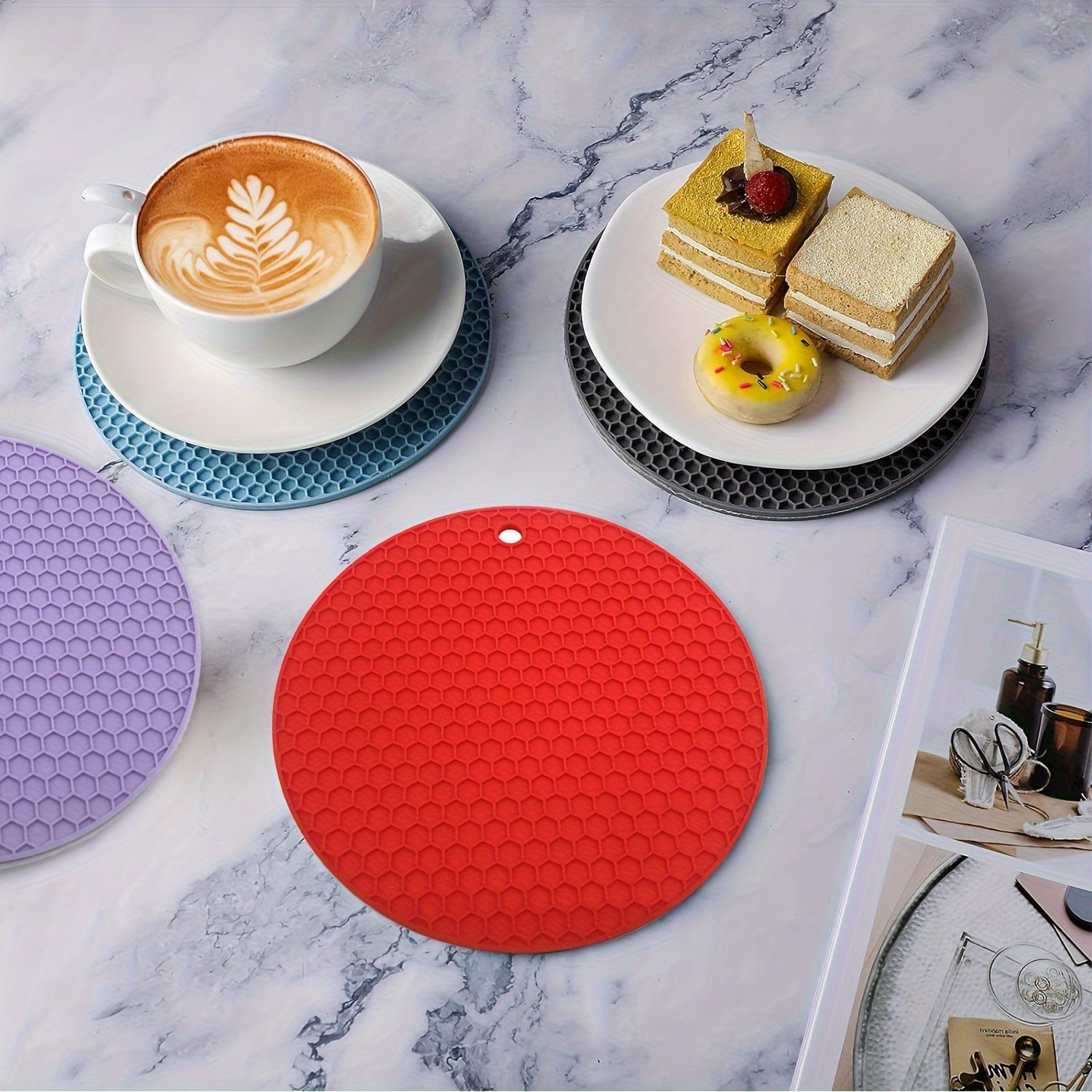 Round Heat Insulation Placemats Non-Slip Cup Coasters Pot Pads for Kitchen