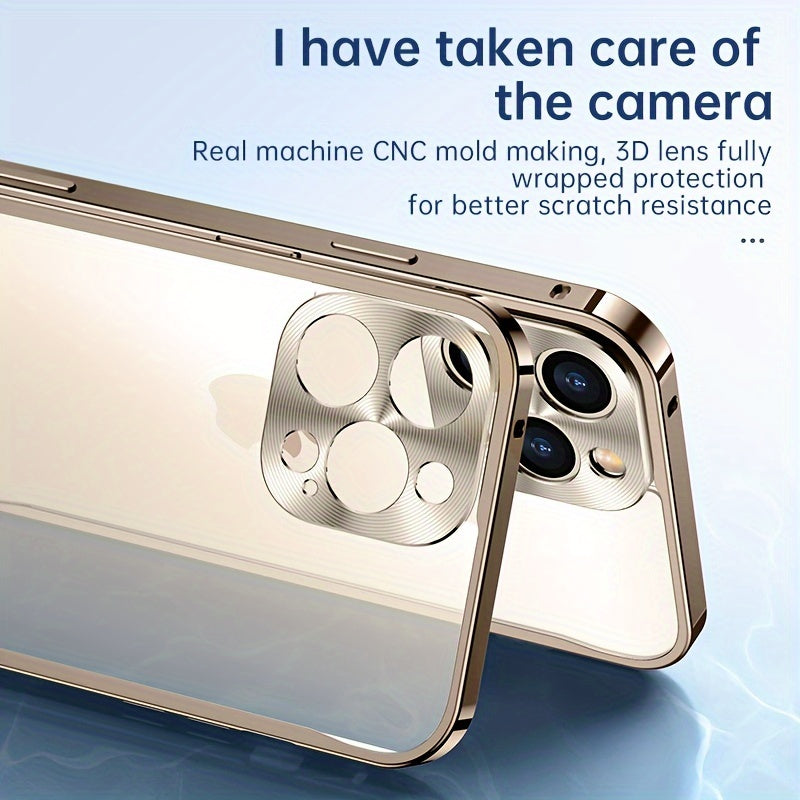Seahorse Buckle Borderless Metal Phone Case for iPhone 11-15 Mini Plus Pro Max