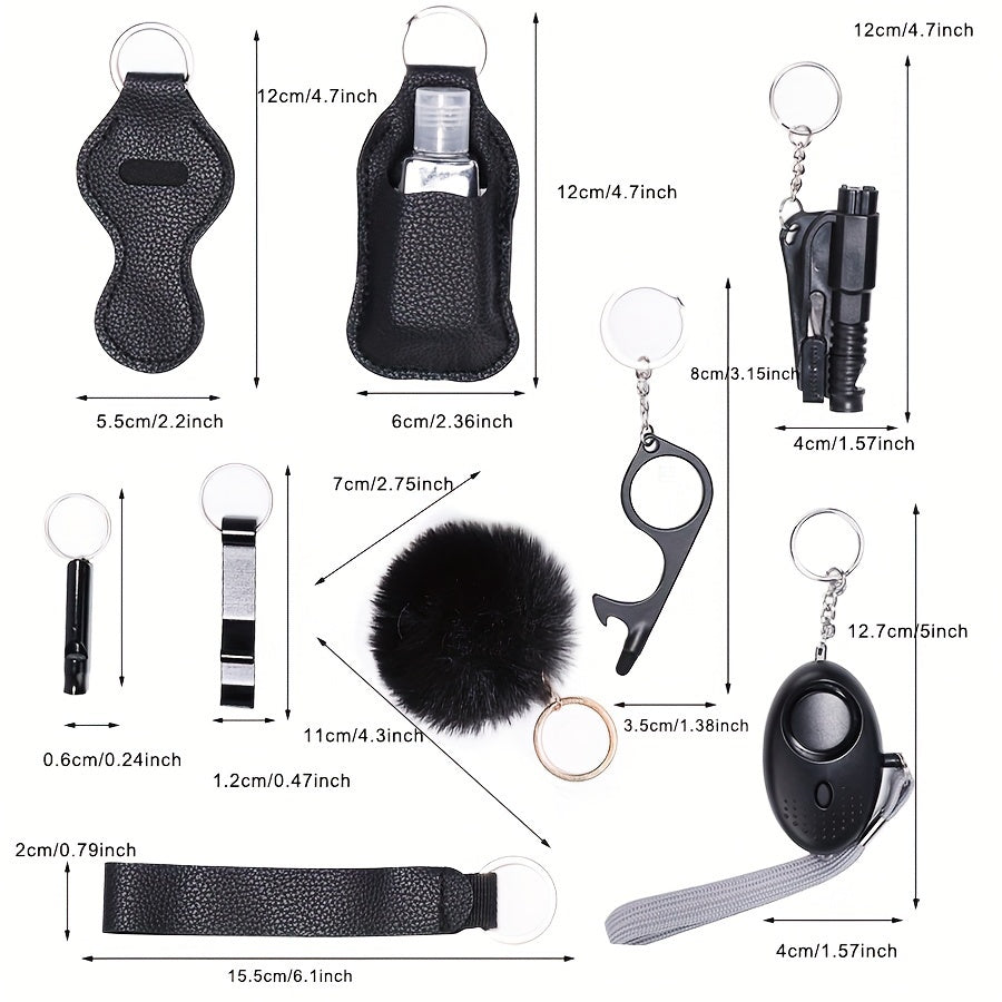 Set of 10 Women's Pink Safety Accessories Personal Alarm Window Breaker Gift Set