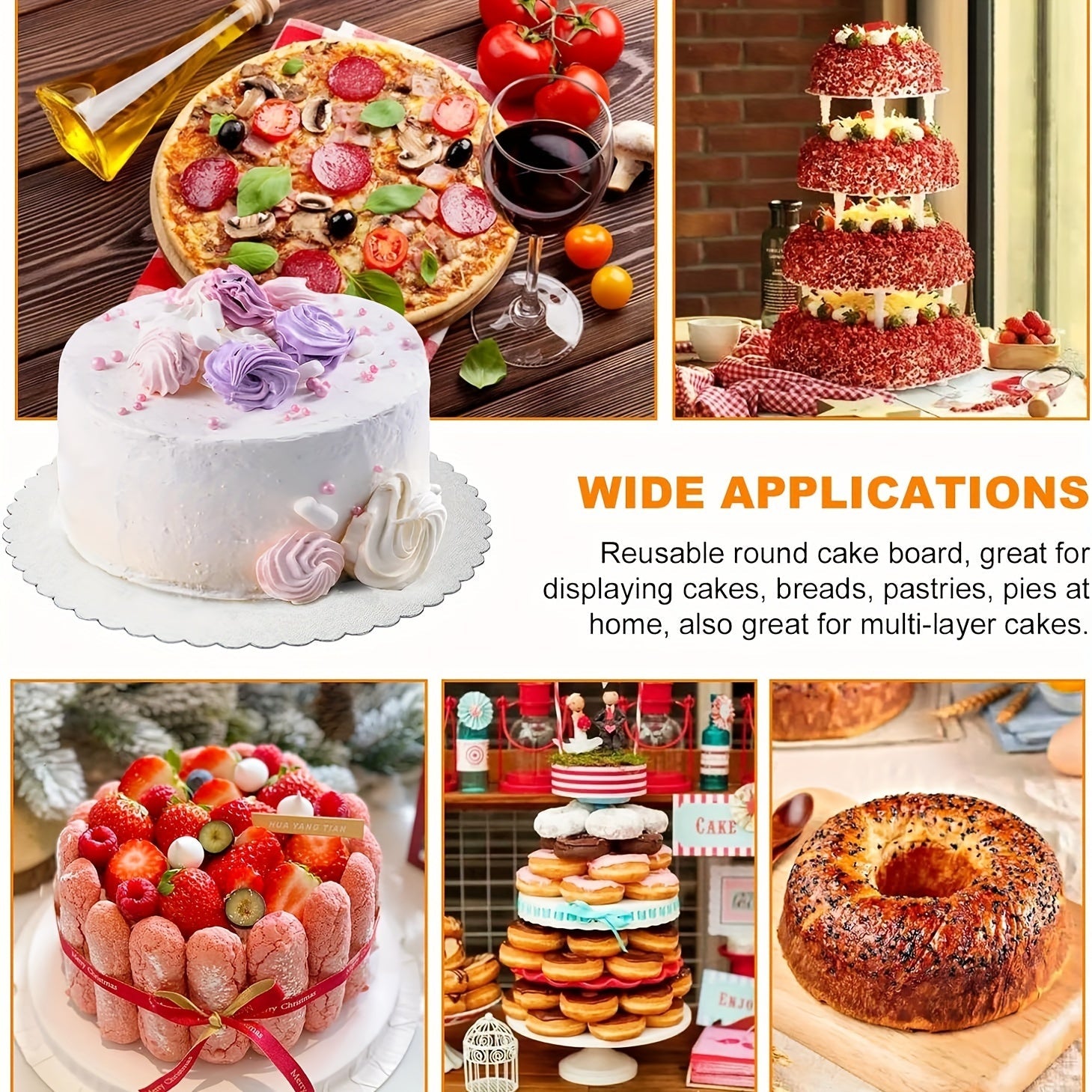 Set of 10 Silver Round Cake Boards with Scallop Edge, Disposable, Grease Proof