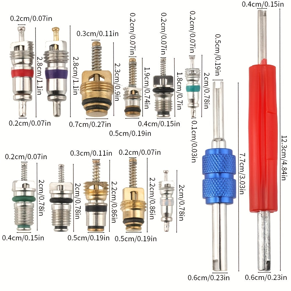 Set of 100 Air Conditioner Valve Cores with 2 Wrenches Replacement Tool