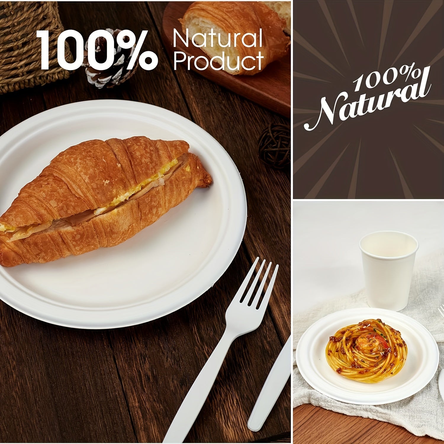 Set of 100 Heavy Duty Sugarcane Fiber Disposable Paper Plates for Parties