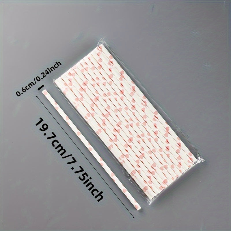 Set of 100 Pink Heart Pattern Paper Straws for Drinks and Celebrations