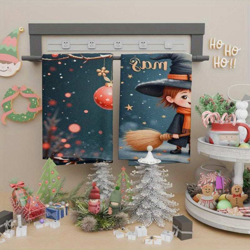 Set of 2 Christmas Kitchen Towels 18x66cm Holiday Decor Reusable