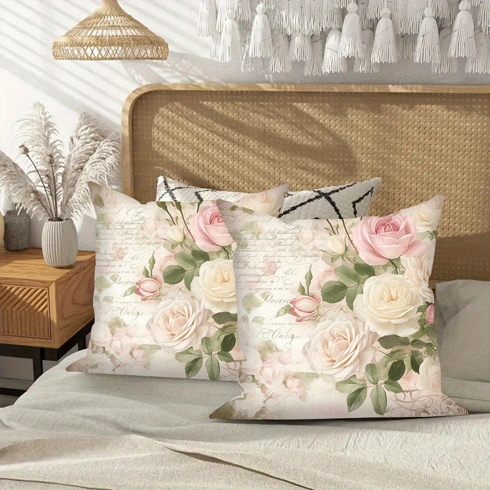 Set of 2 Floral Polyester Throw Pillow Covers Square Cushion Cases for Sofa and Bedroom