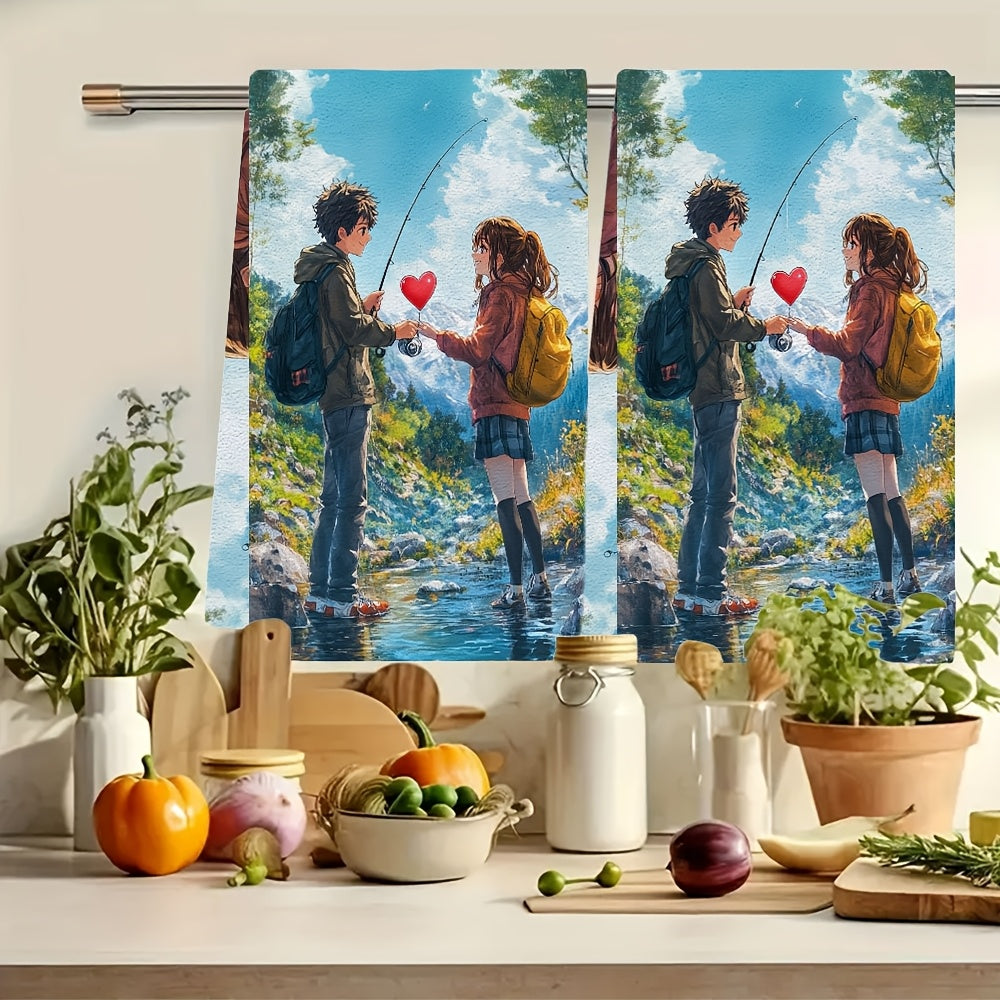 Set of 2 Anime Boy and Girl Kitchen Towels 16x24 Ultra Soft Absorbent