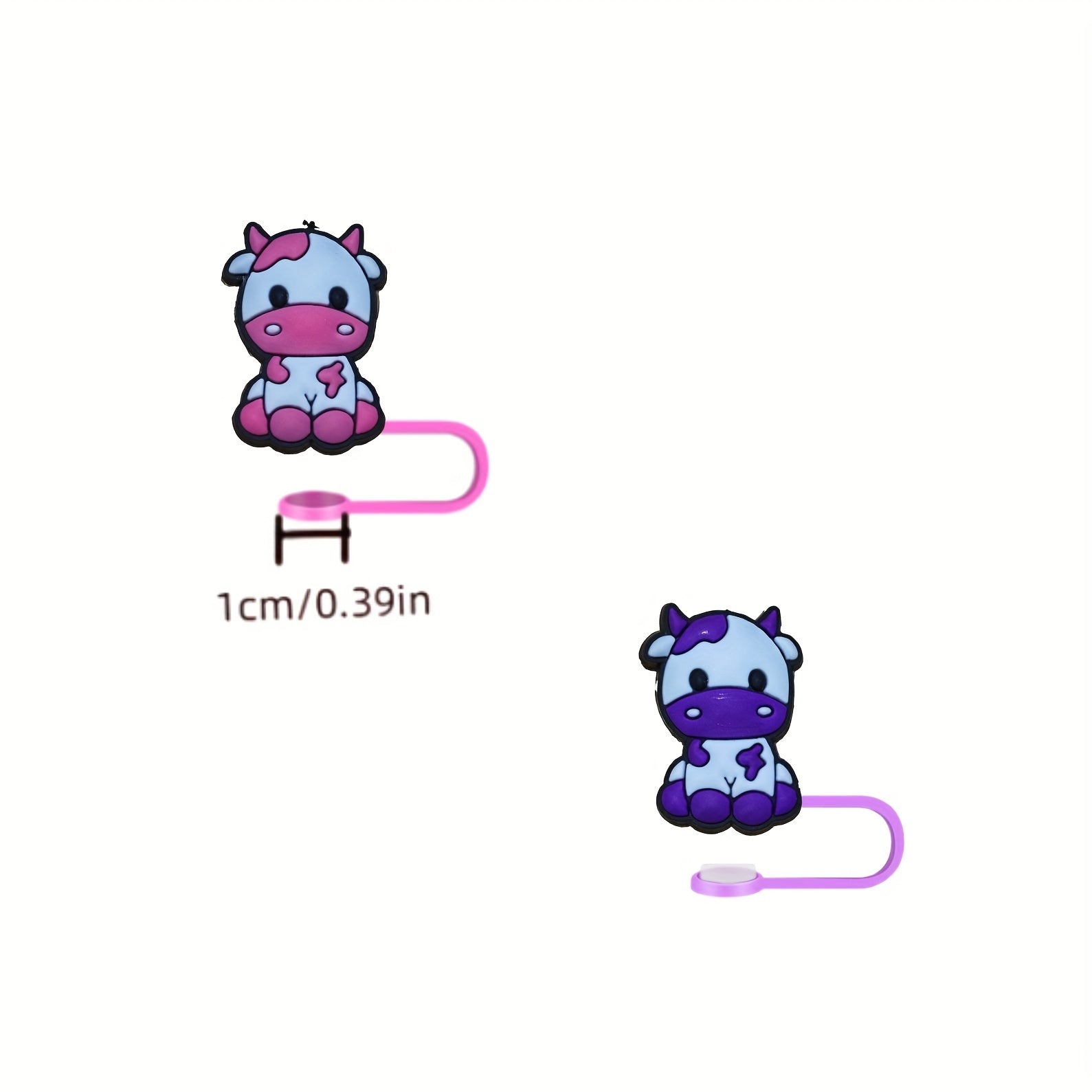 Set of 2 Cartoon Cow Straw Toppers Pink Purple Black with Silicone Dust Covers for Party and Christmas Gifts