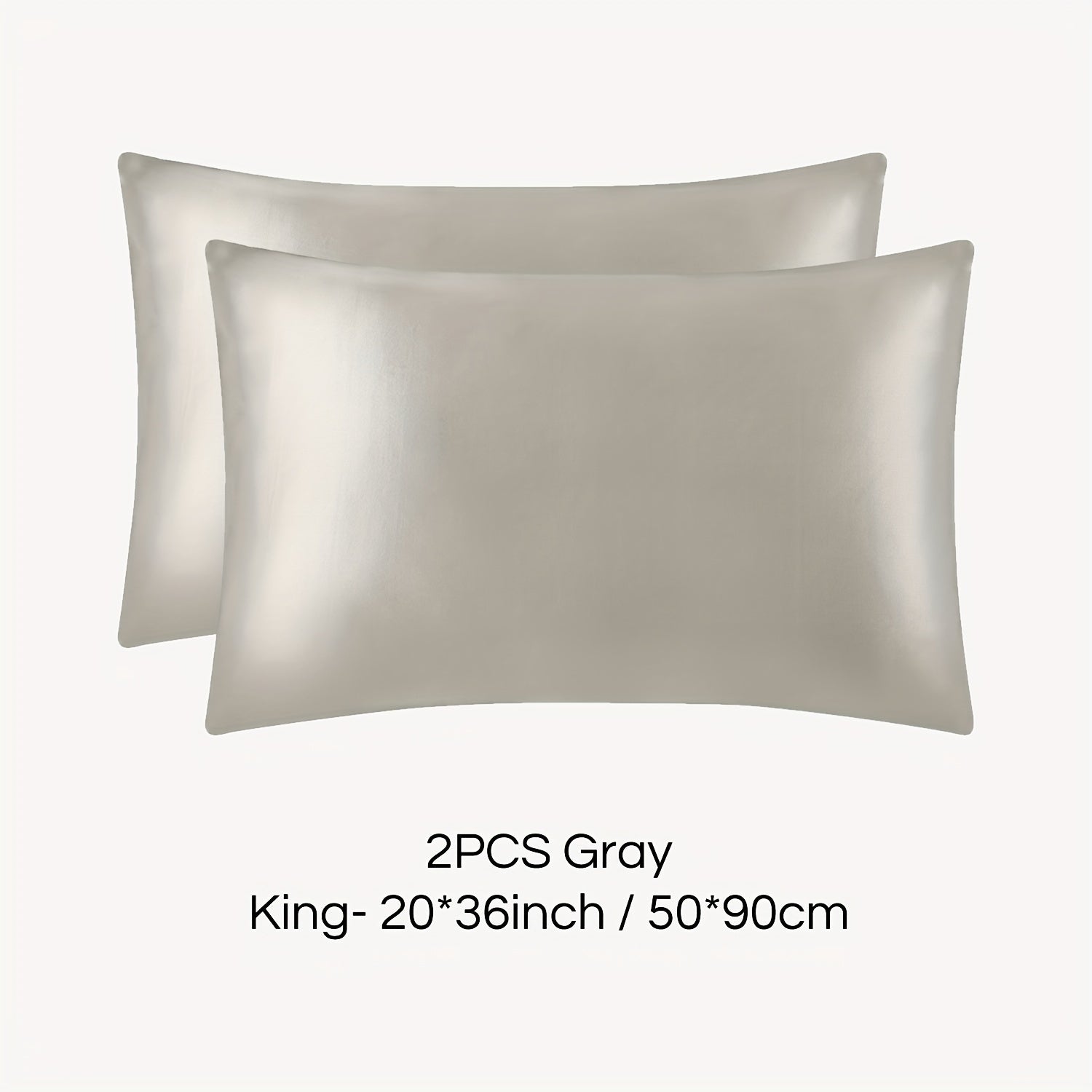 Set of 2 Mulberry Silk Pillowcases Hypoallergenic Satin Weave Solid Color Invisible Zipper Machine Washable Skin Hair Care