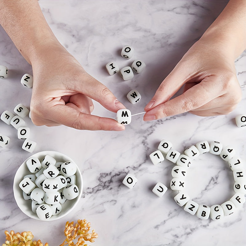Set of 26 Glow-in-the-Dark Silicone Cube Beads for Jewelry and Crafts Includes Alphabet and Number Dice