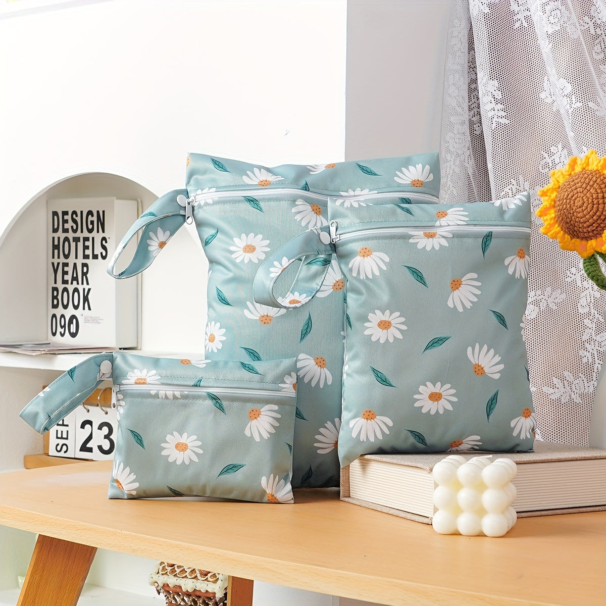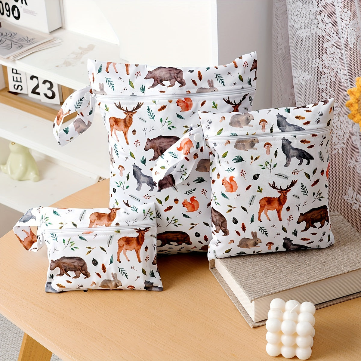 Set of 3 Waterproof Cloth Diaper Bags Reusable Washable Storage Pouches