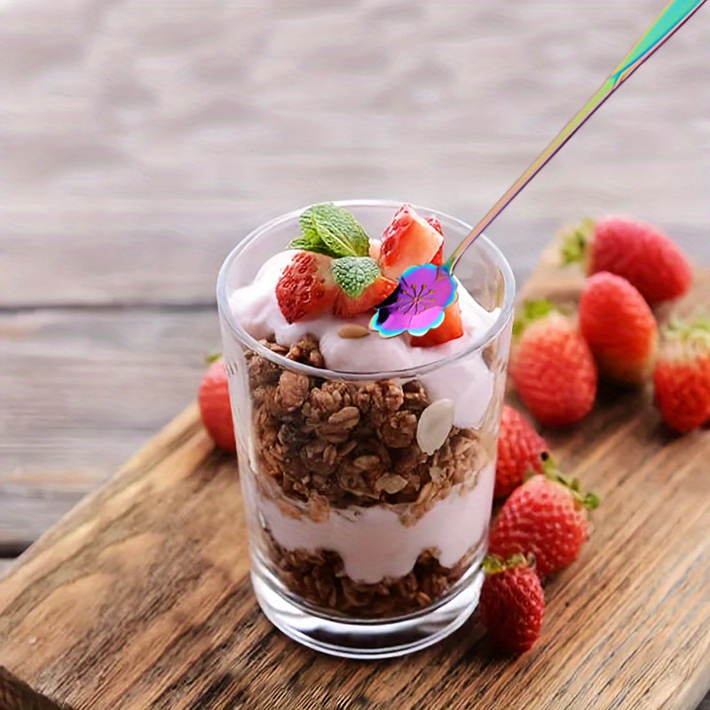 Set of 4 Iridescent Stainless Steel Coffee Spoons with Floral Designs for Elegant Table Settings