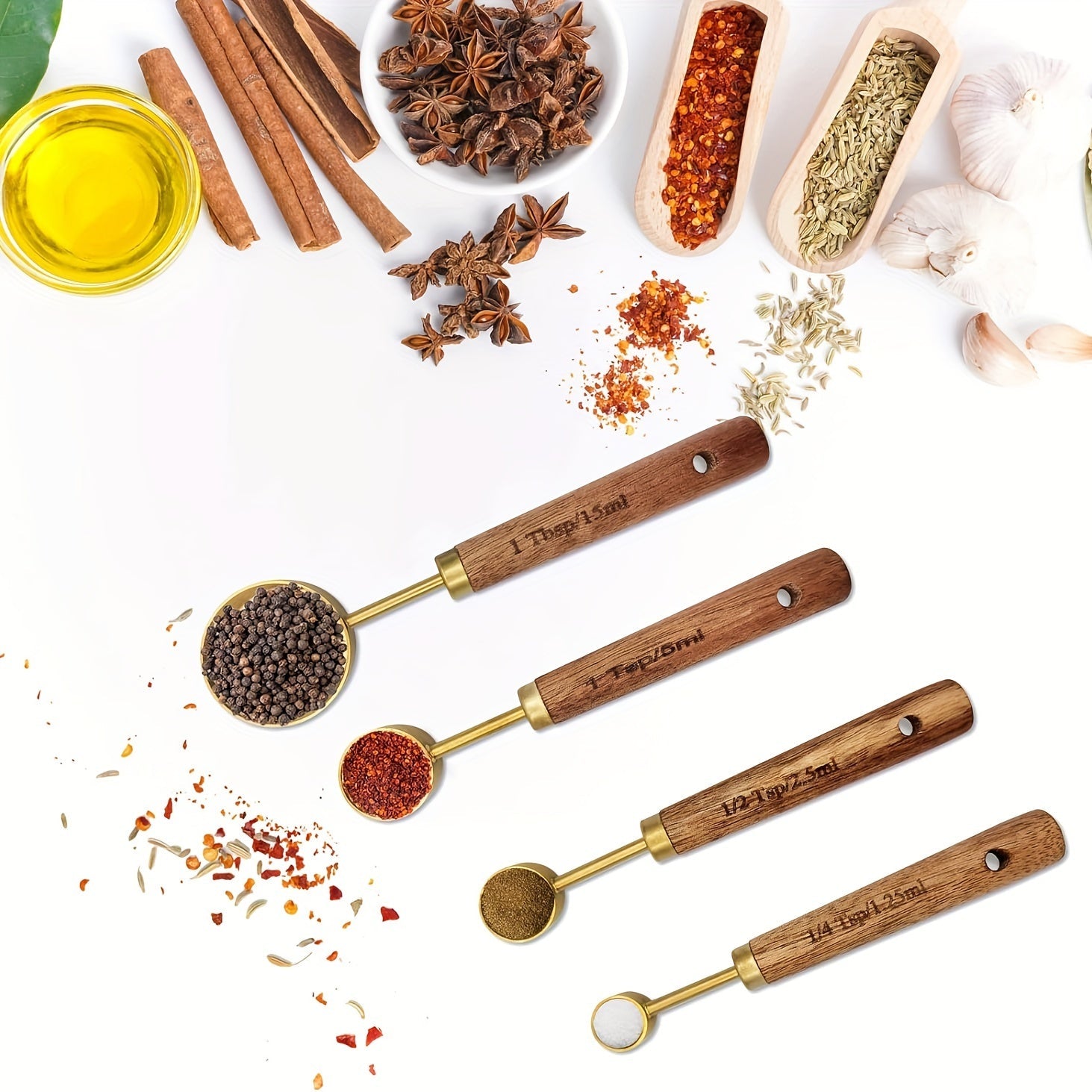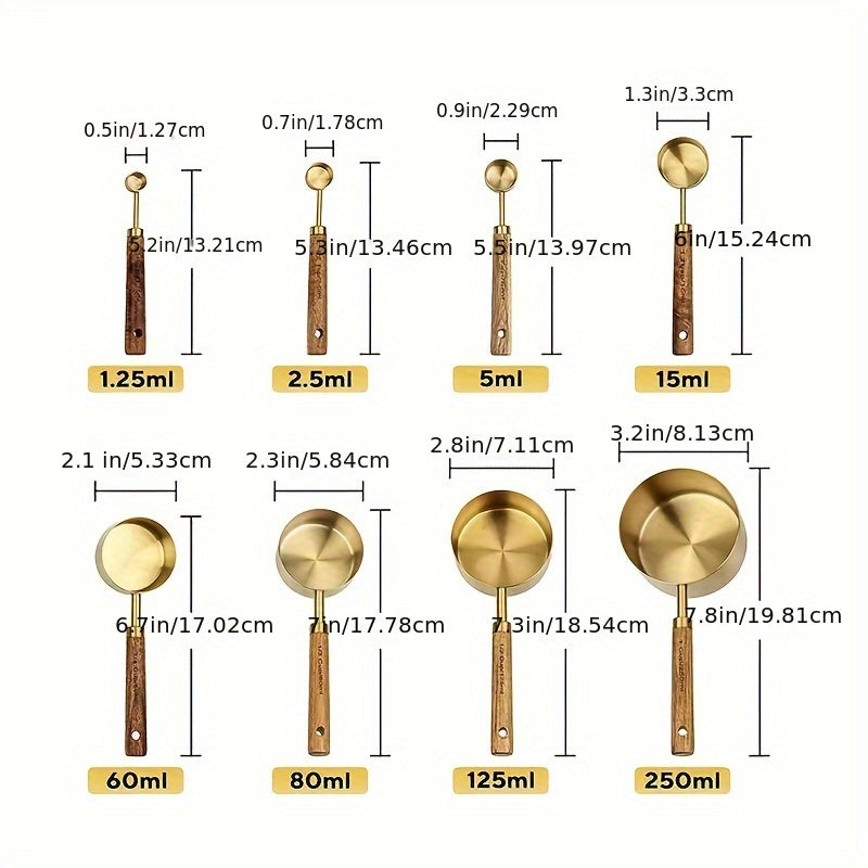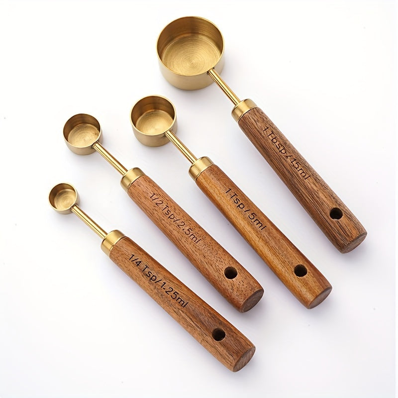 Set of 4 Stainless Steel Measuring Cups and Spoons with Wood Handles