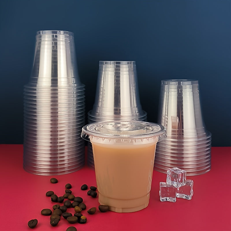 Set of 50 Disposable Plastic Cups with Lids 12oz and 16oz for Parties and Events