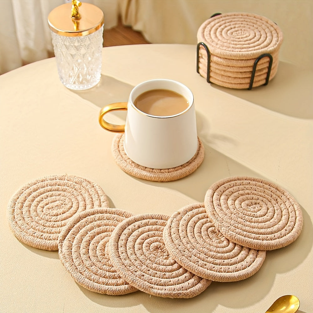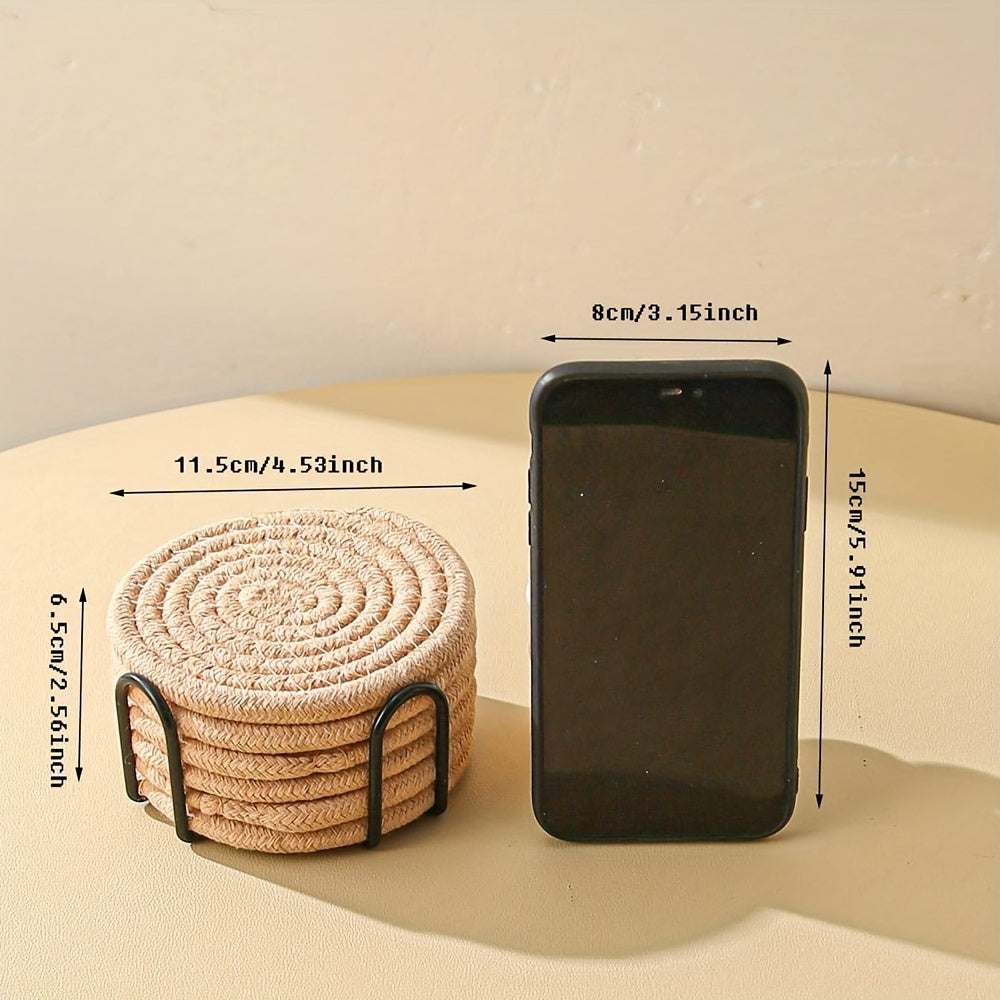 Set of 6 Brown Handwoven Table Mats and Coasters Non-Slip Heat-Resistant