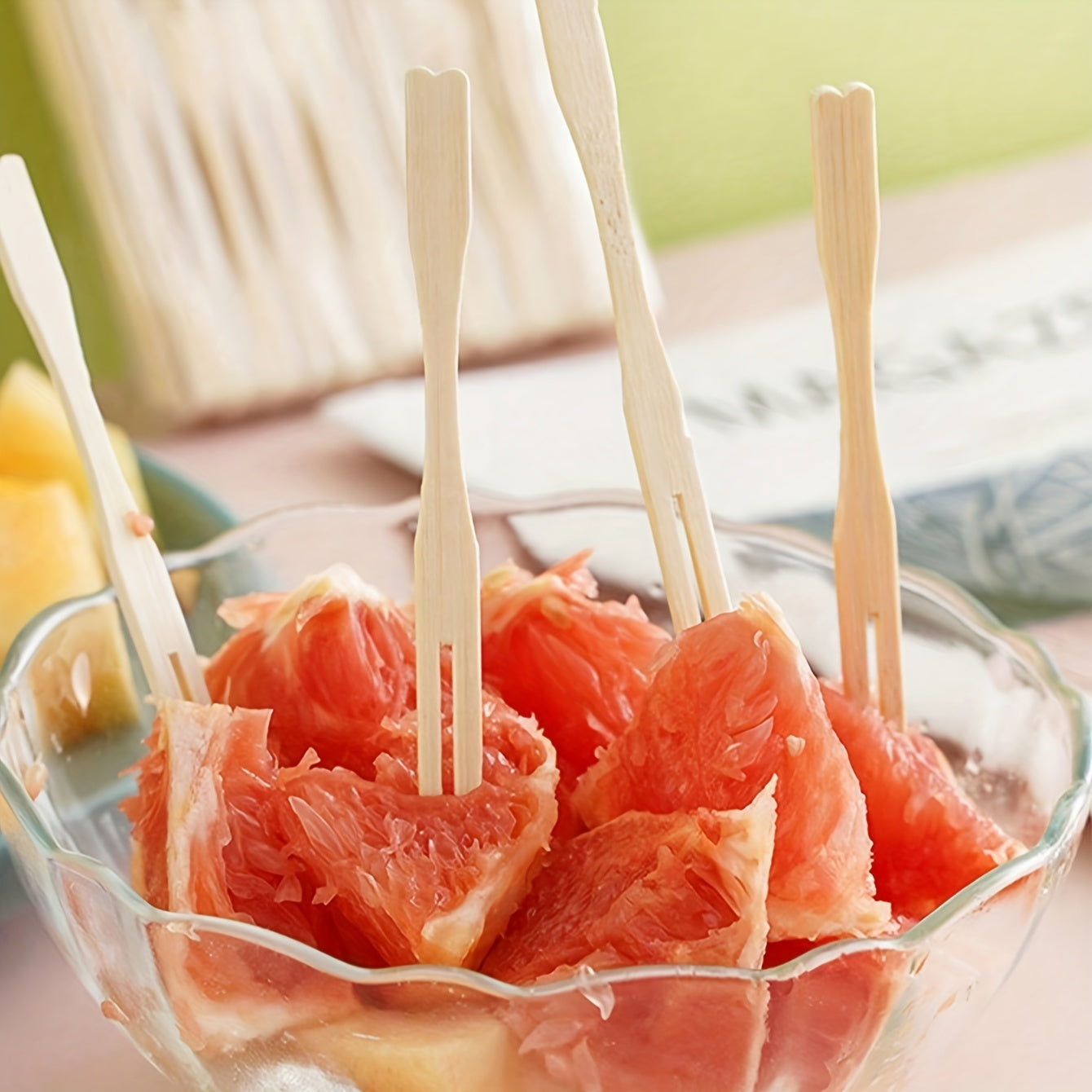 Set of 80 Beige Wooden Fruit Picks and Bamboo Cheese and Cake Forks