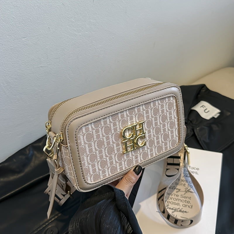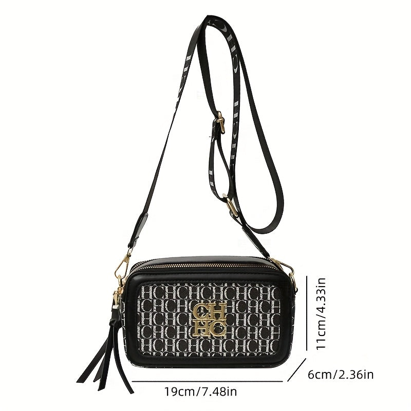 Korean Style Crossbody Bag with Contrast PU Shoulder Strap and Letter Print