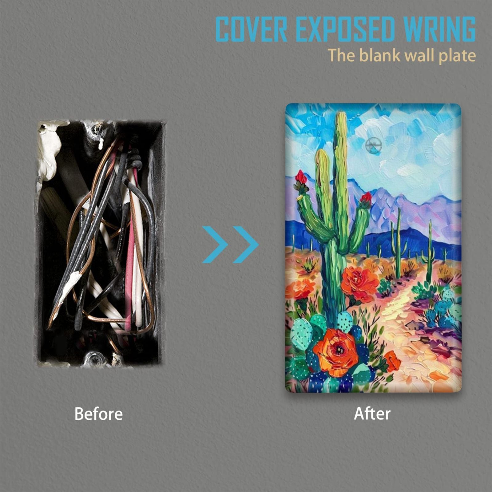 Cactus Wall Art Panels with Light Switch Cover for Bedroom or Kitchen Decor