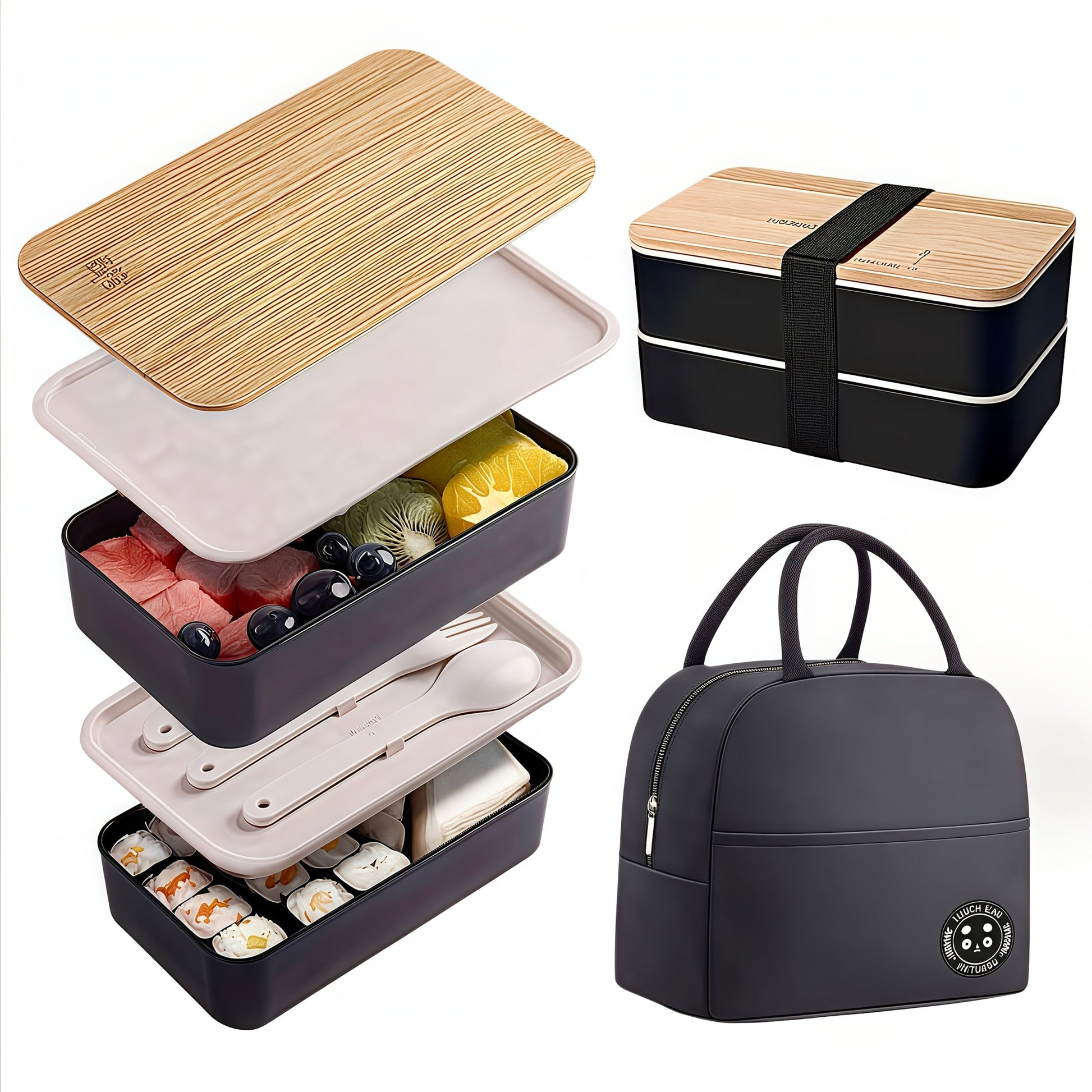 Insulated Bento Lunch Box Set with Leakproof Containers, Bamboo Lids, Dividers