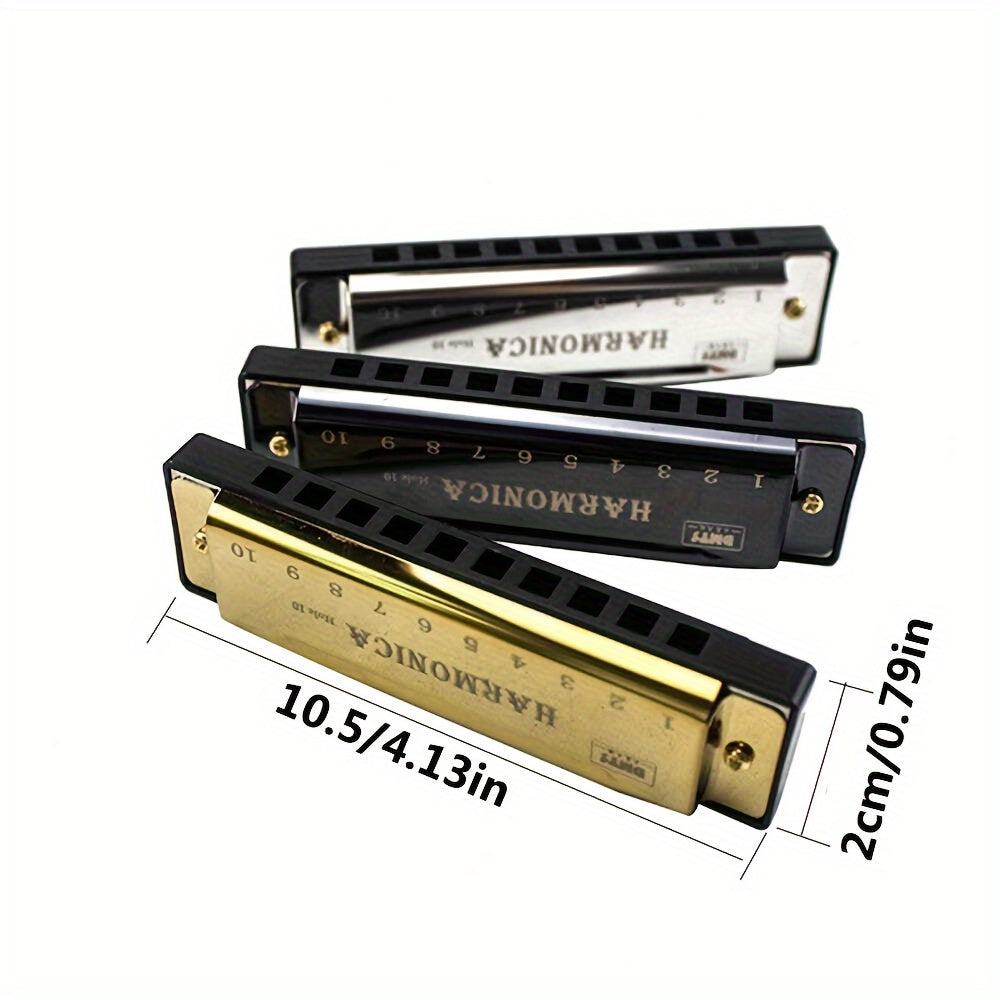 10-Hole Chromatic Harmonica in C Key Plastic Polished Finish with Protective Case for Beginners