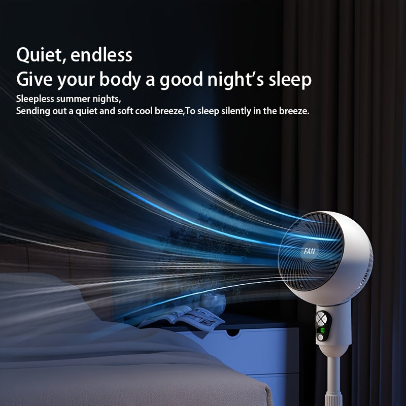 Digital Display Floor Fan with Remote Control Adjustable Height USB Powered Indoor Outdoor
