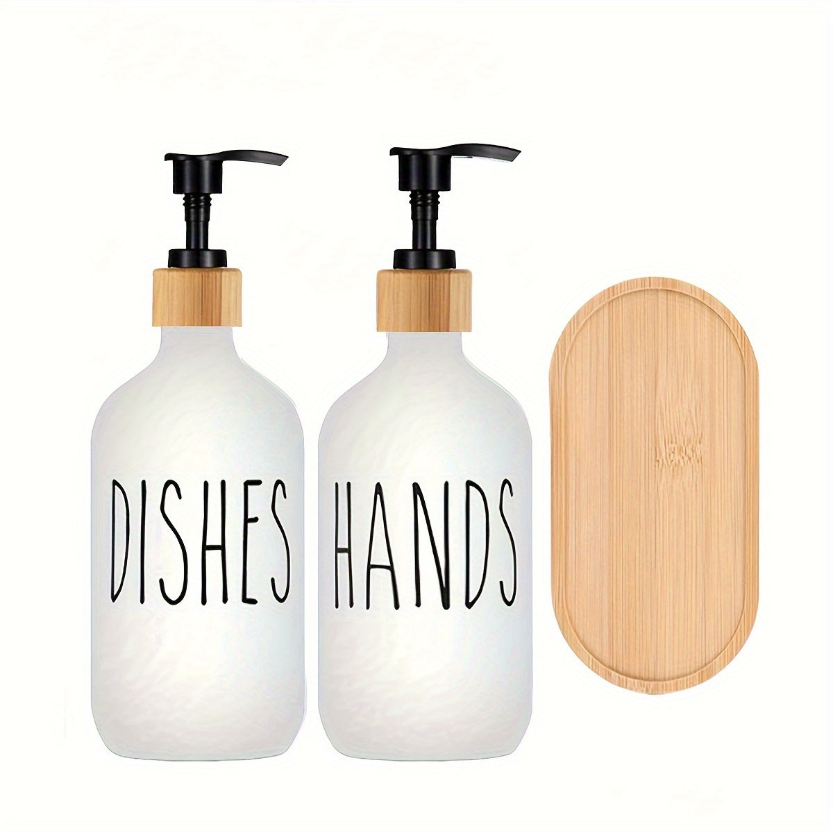 Bathroom Soap Dispenser Set with Tray Refillable Lotion Bottle for Shower Gel and Shampoo
