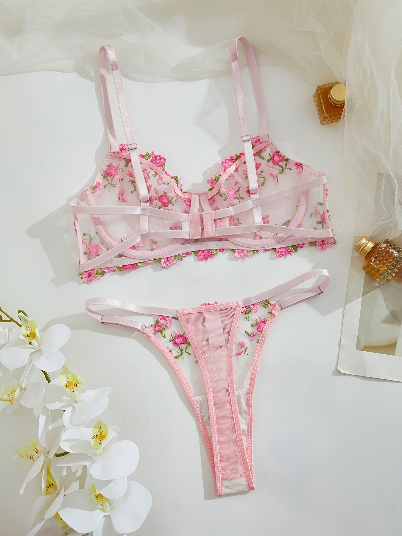 Women's Floral Lingerie Set with Unlined Bra and Fashionable Panties