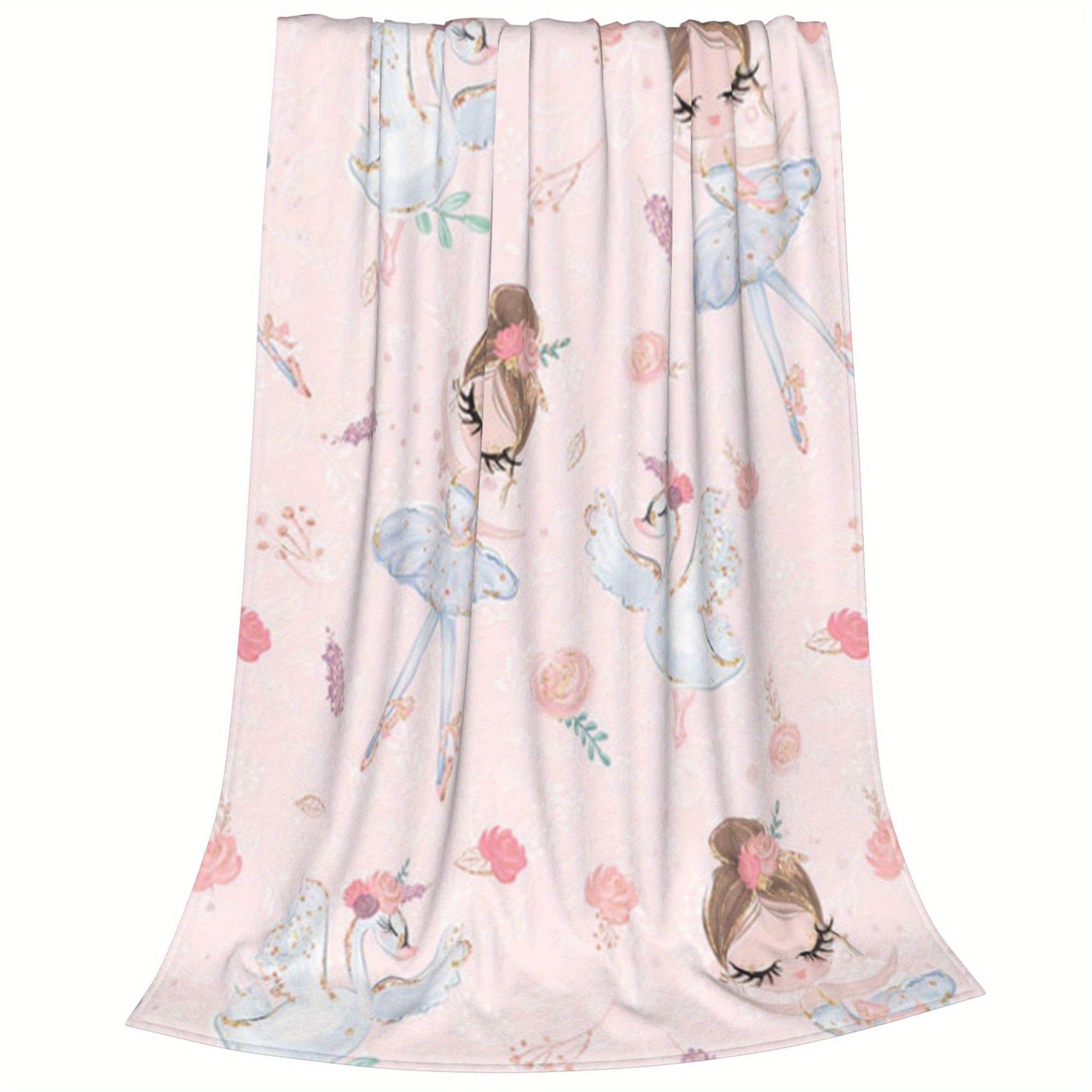 Pink Velvet Blanket with Ballet Dancer Pattern for Kids and Teens